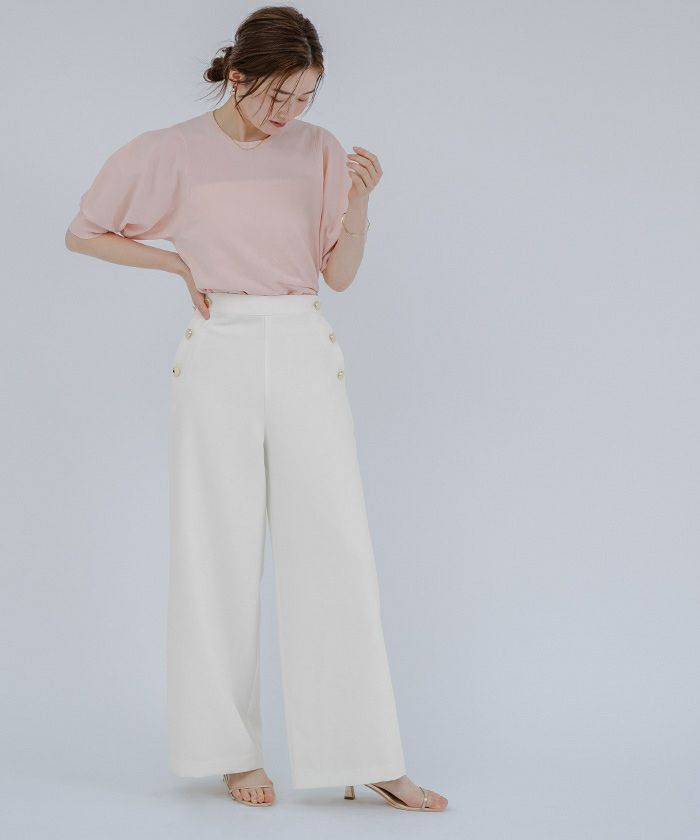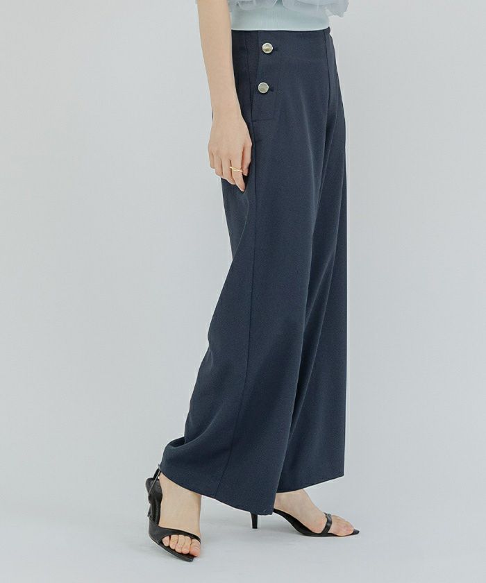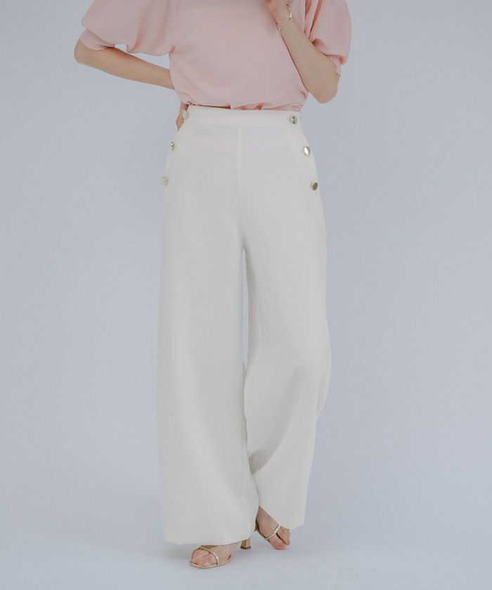 程よいゆとり感があるゴールド釦がアクセントのマリンワイドパンツ。