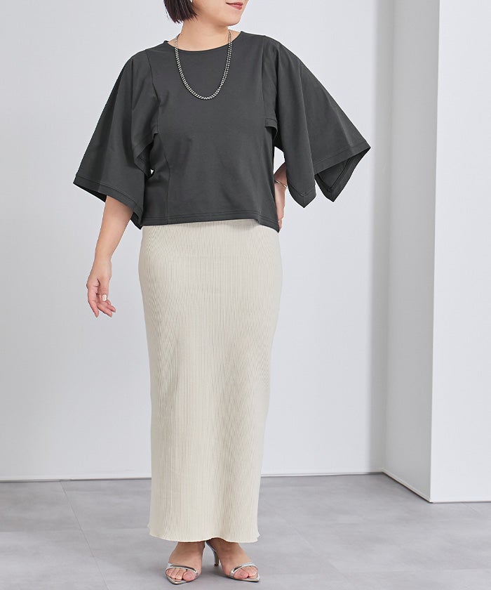 袖が揺れるディティールが華やかな印象をもたせてくれます。