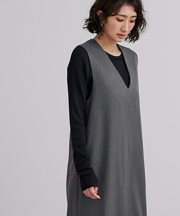 深めのVネックが首元をすっきり見せてくれます。