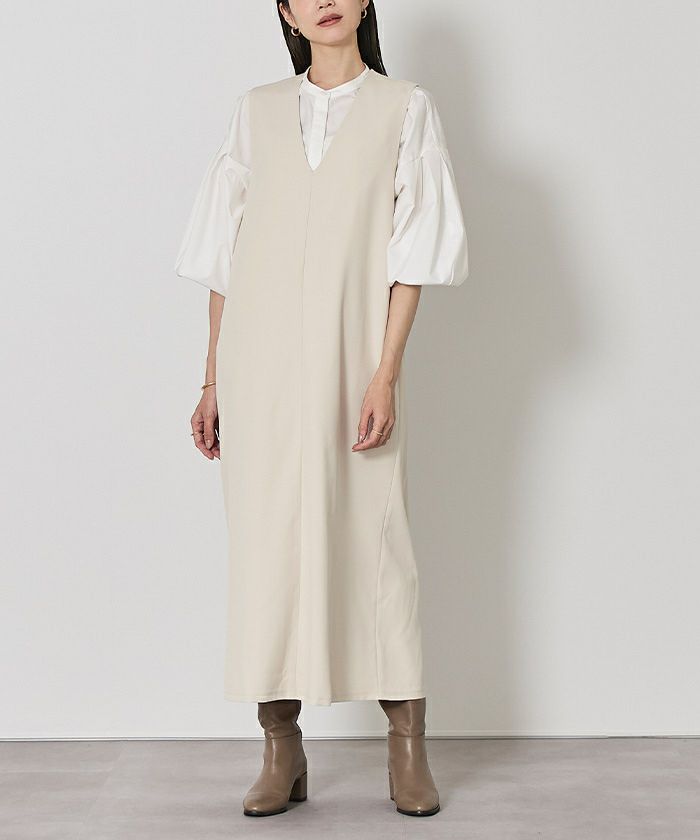 シンプルで洗練されたデザインのロングワンピース。
