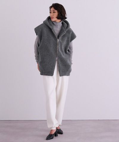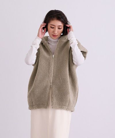 ふんわりとしたボリューム感が魅力のフーディーボアベスト。