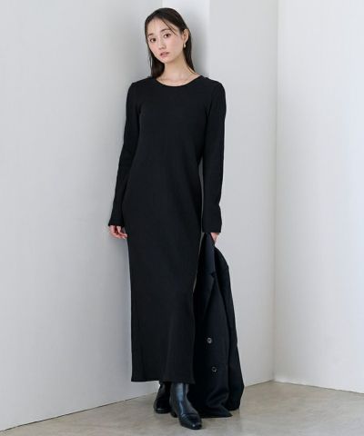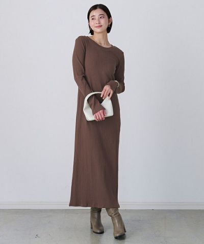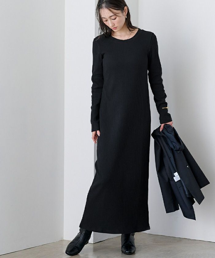 すっきりとしたIラインシルエットのリブワンピース。