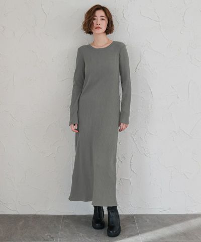 クルーネックリブワンピース