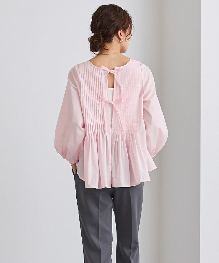 プリーツペプラムリボンブラウス【メール便可/100】