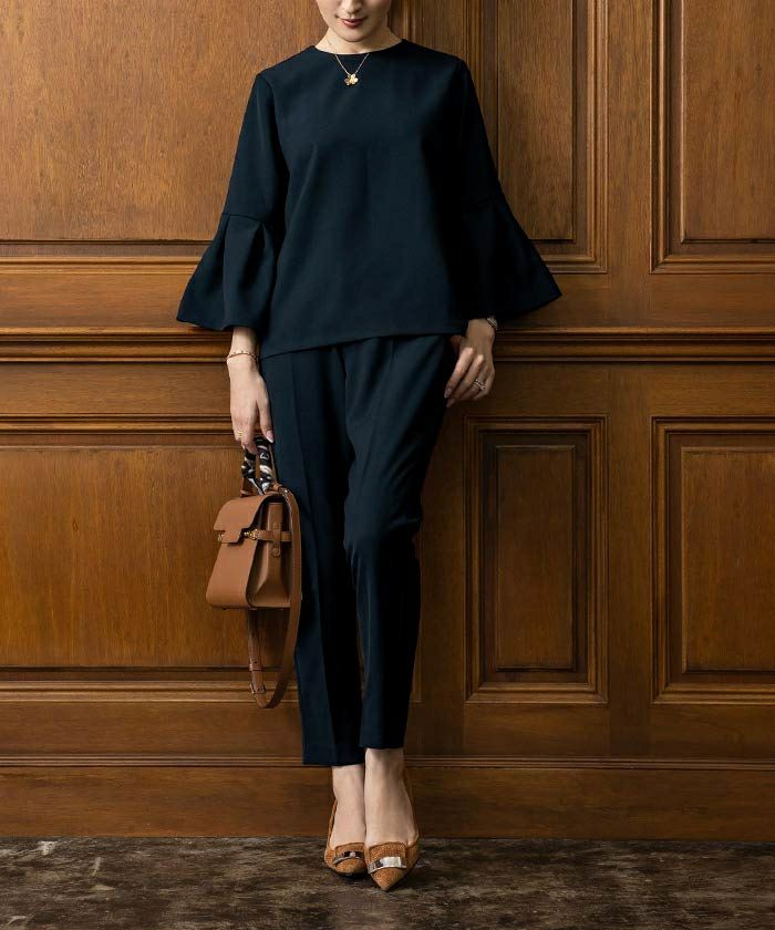 センタープレスが縦のラインを際立たせ、美脚効果も期待できます。