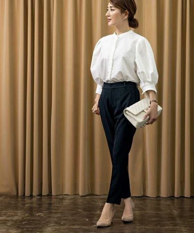 細身シルエットですっきりと穿くことができ、美脚効果のあるスティックパンツ。