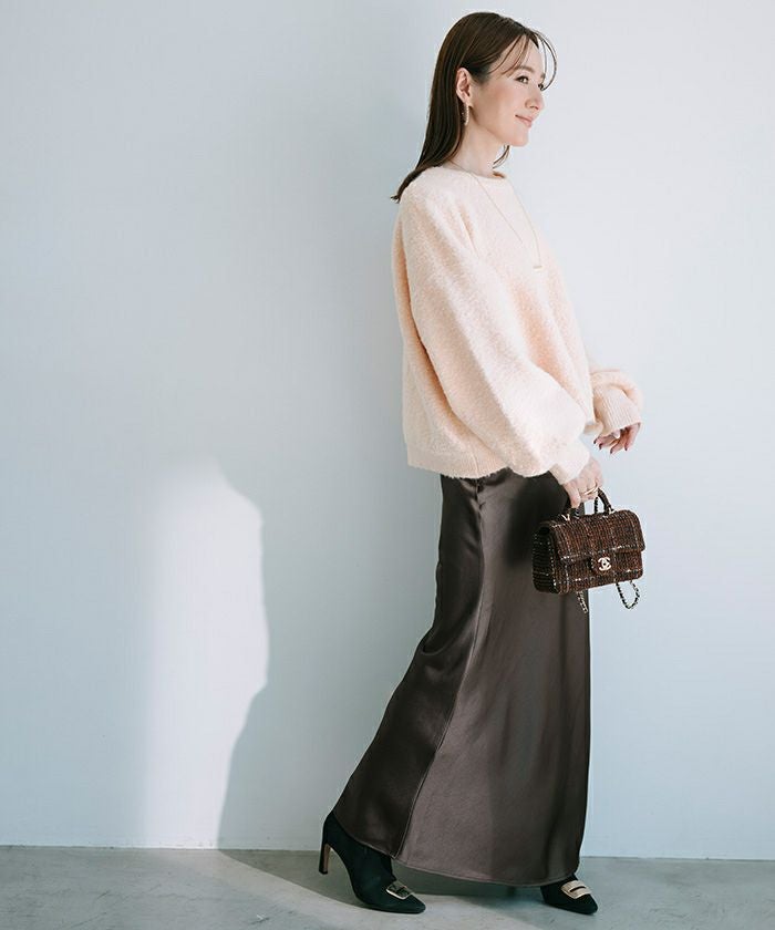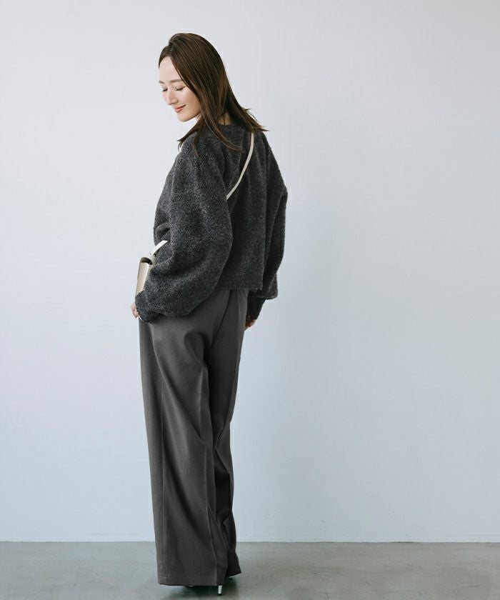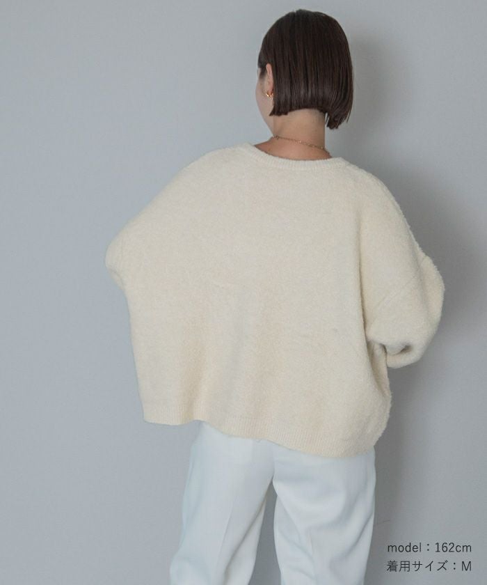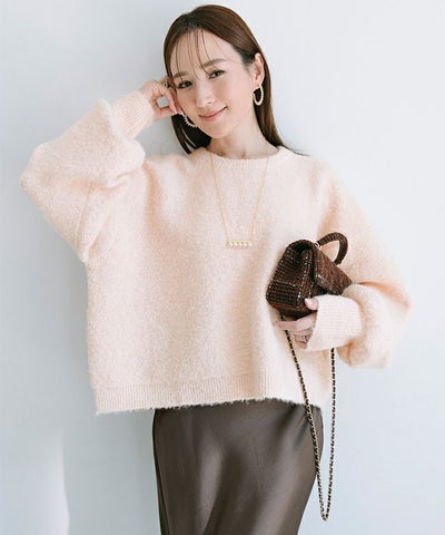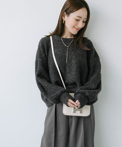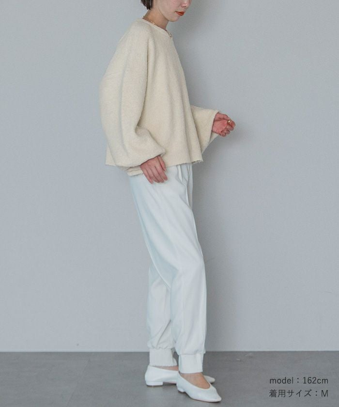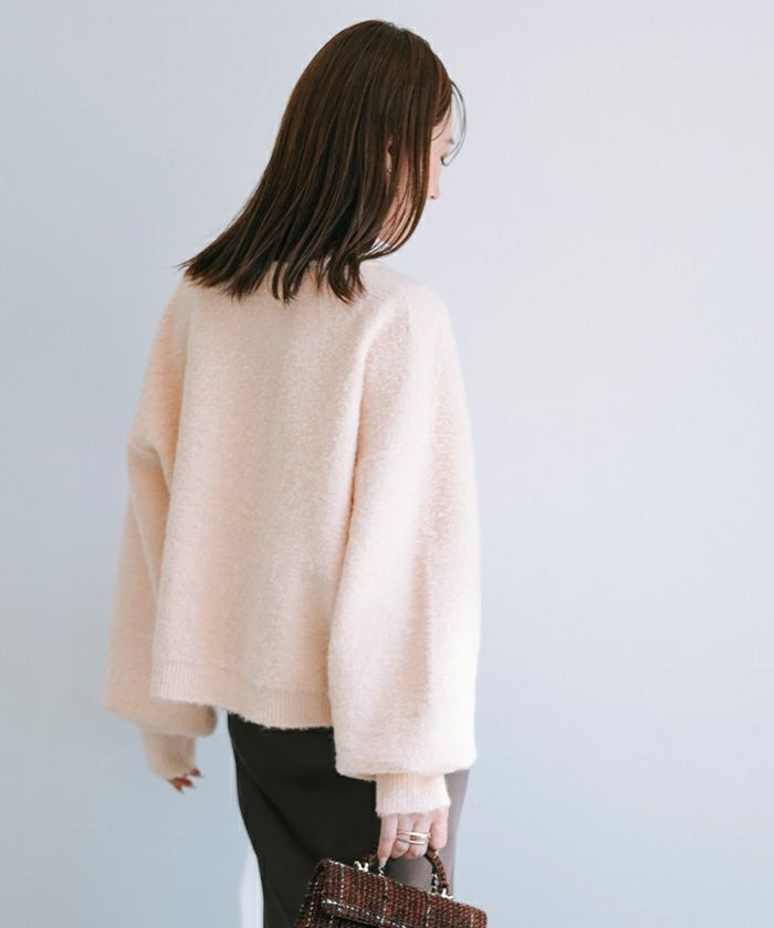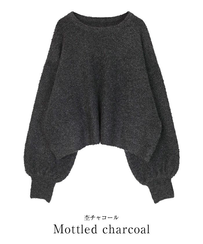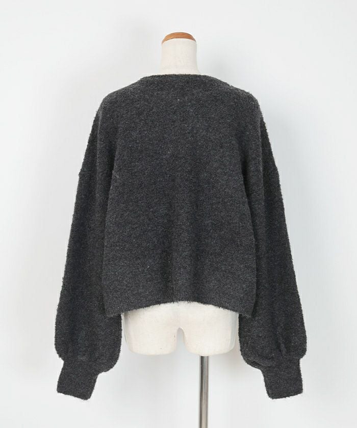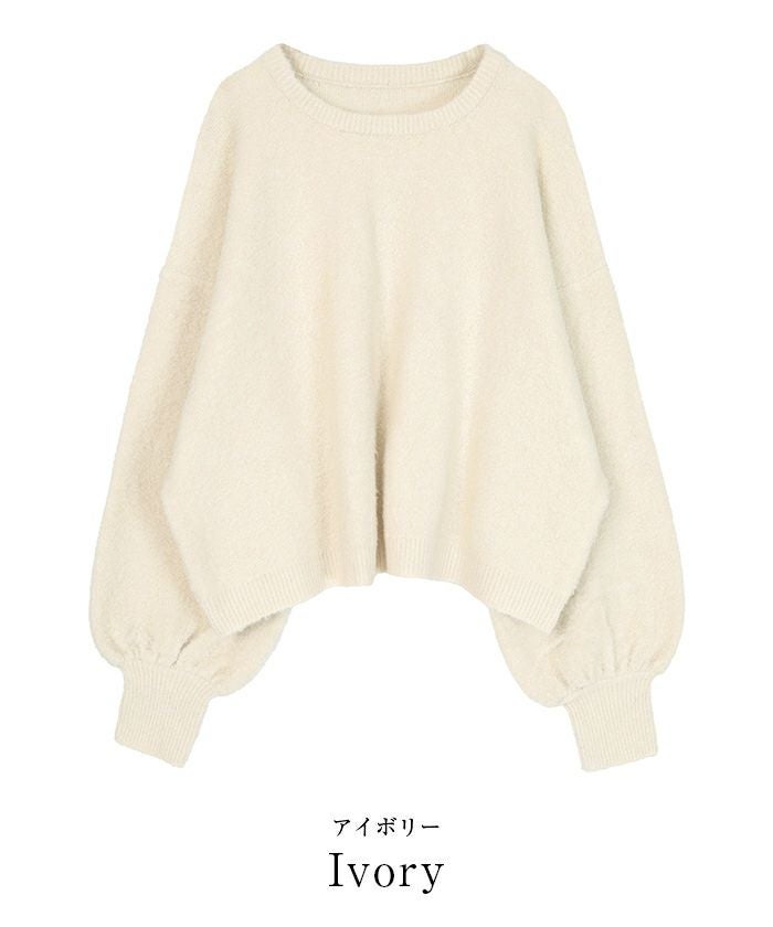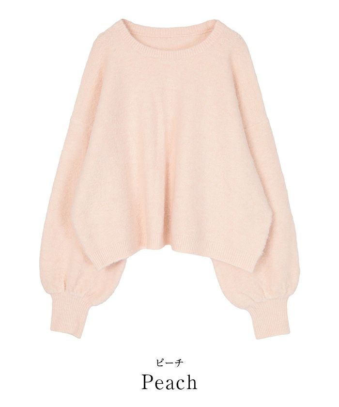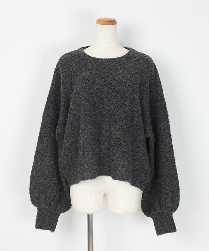 クルーネックパフスリーブニット
