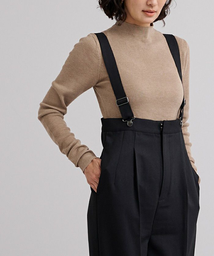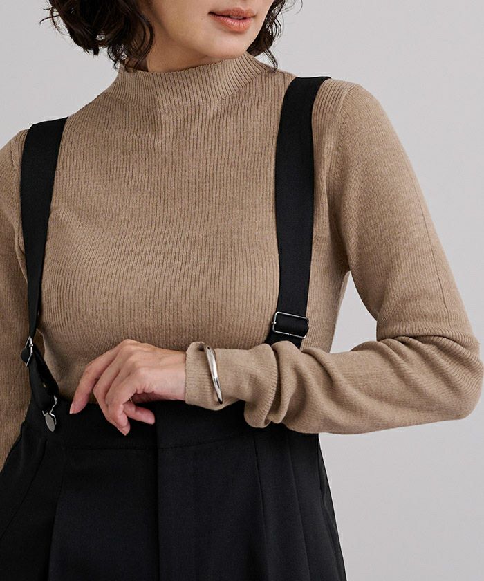 シンプルで使い勝手の良いウールブレンドプチハイネックリブニット。