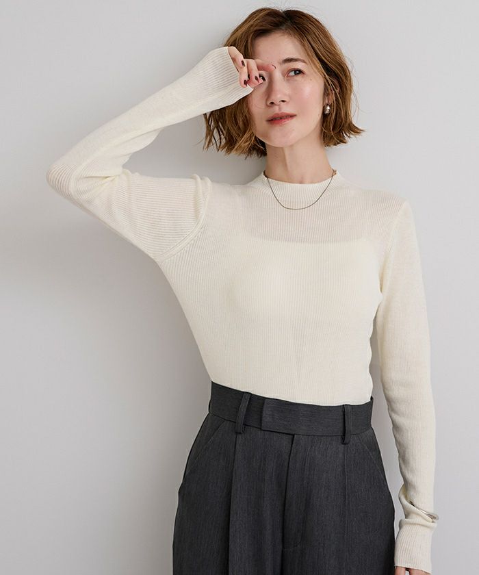 敢えて甘めのリブ編みにすることでシースルー感を演出。