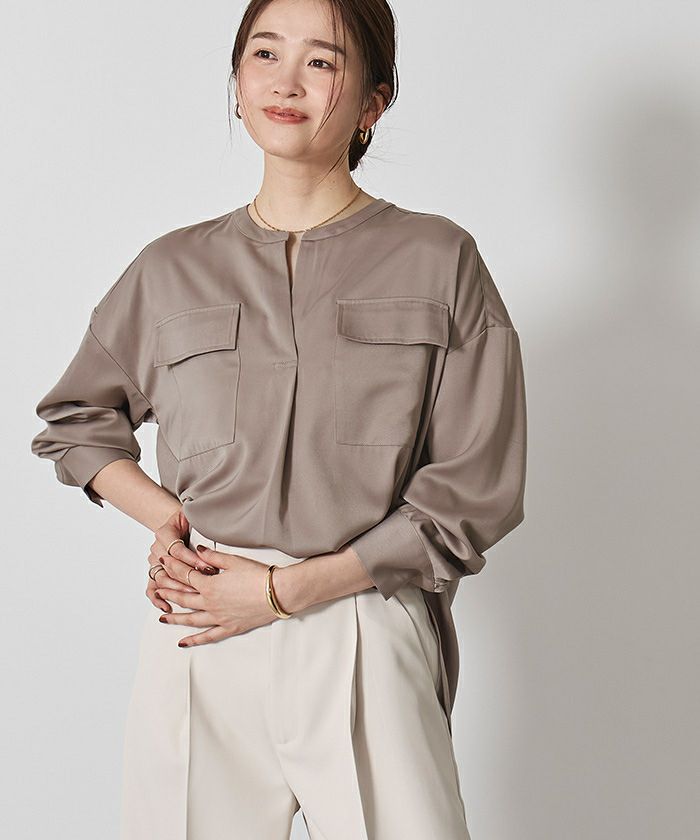 他の画像を見る 【洗える】【期間限定★3500均一】 バンドカラーデザインボウタイオーバーサイズブラウス【メール便可/80】 定価 ¥ 4,389 のところ 価格 ¥ 3,500 税込 お気に入りに登録する