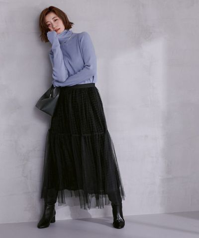 ドット柄購入 とっても可愛いです。 冬はタイツ着用すれば、真夏以外は着用出来ると思います。 チュールスカートはフワッとして太って見えたりしないか心配でしたが、そんな事はなくスッキリキレイに見えます。 162㎝Mサイズで足首位でした。
