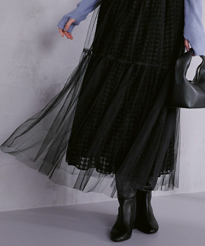 フロッキープリントが大人可愛いティアードスカート。