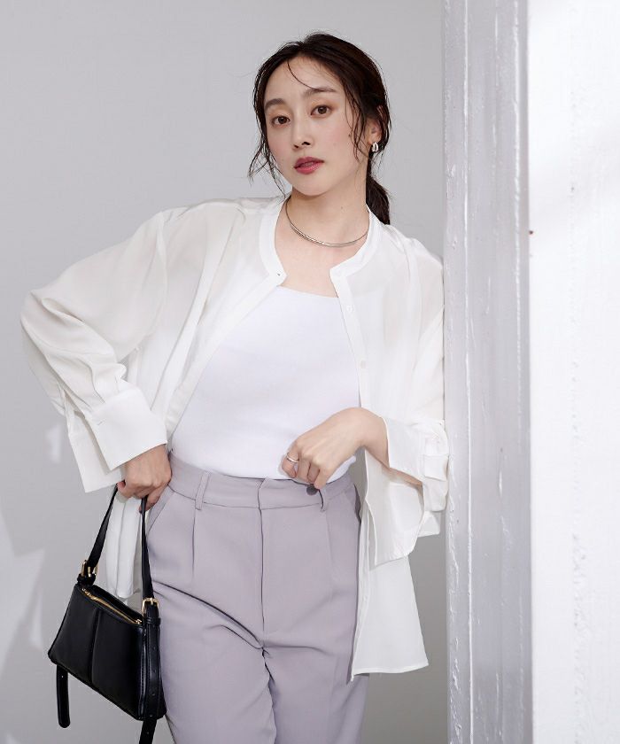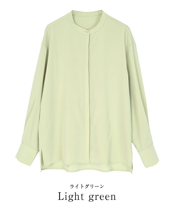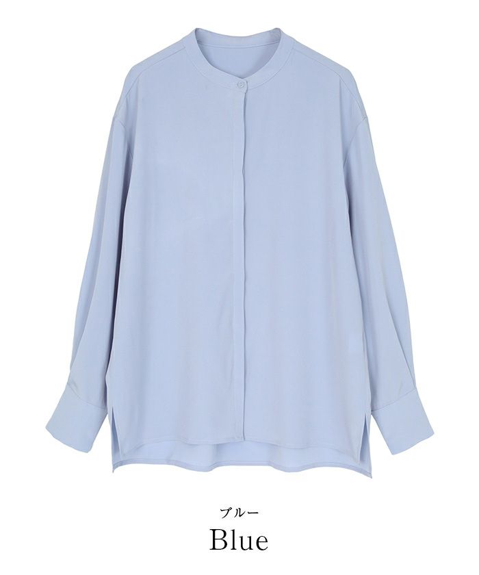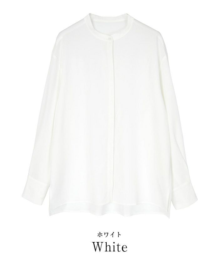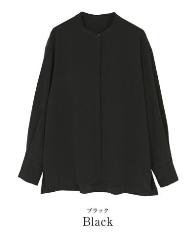 バンドカラーと比翼仕立てで襟元にきちんと感を演出。