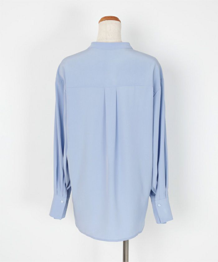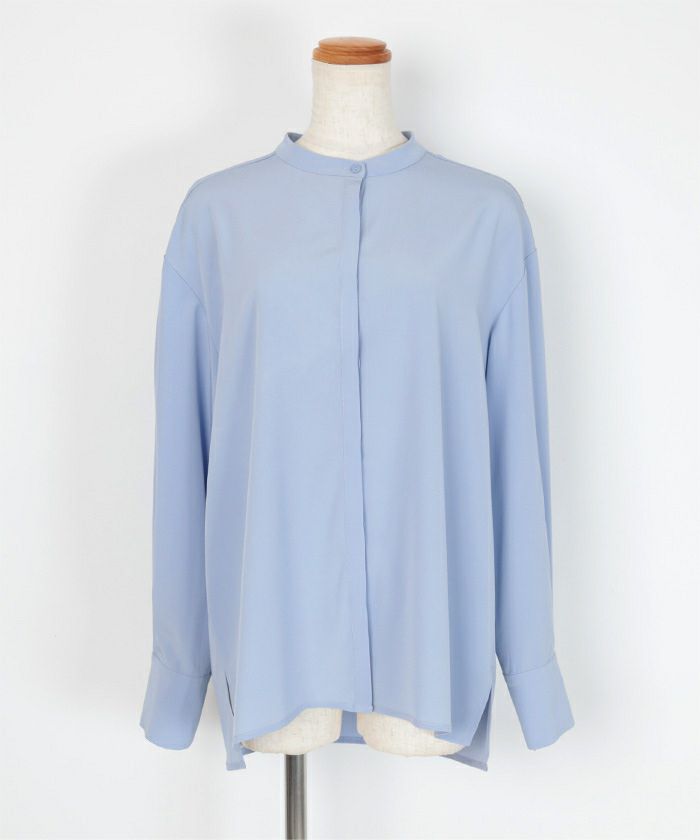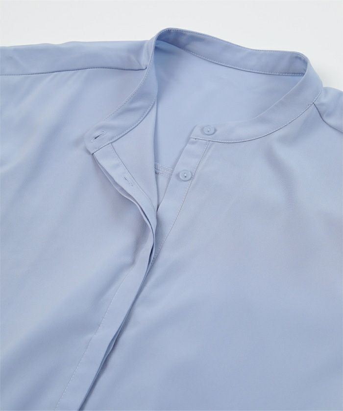 アジャスタブルカフスがポイントのバンドカラーシャツ。