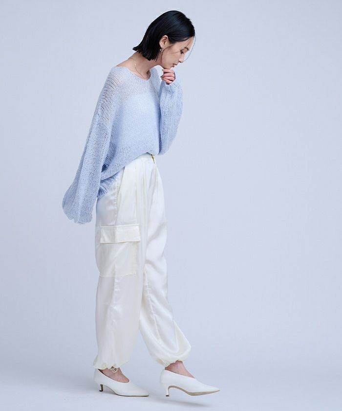 ・ざっくりした編地で、華奢見せを叶えるゆったりしたボリュームスリーブ。