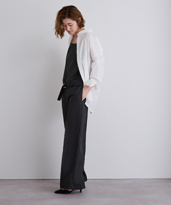 ローウエストに共布のベルトがついてシンプルながらもこだわりのあるデザインに仕上げました。