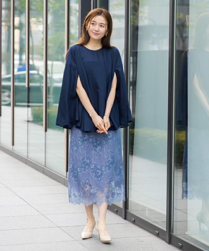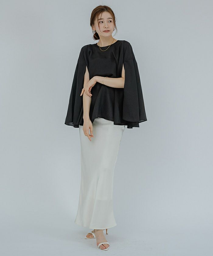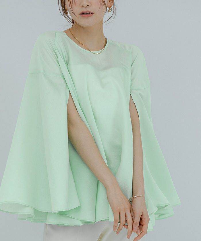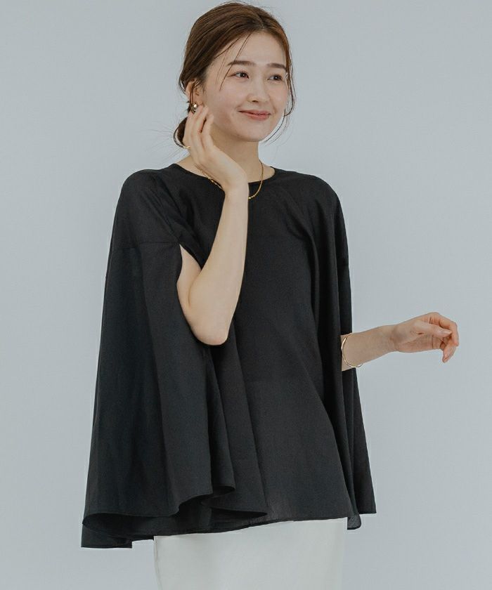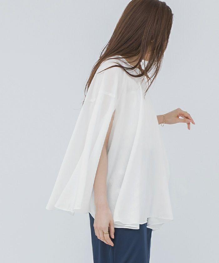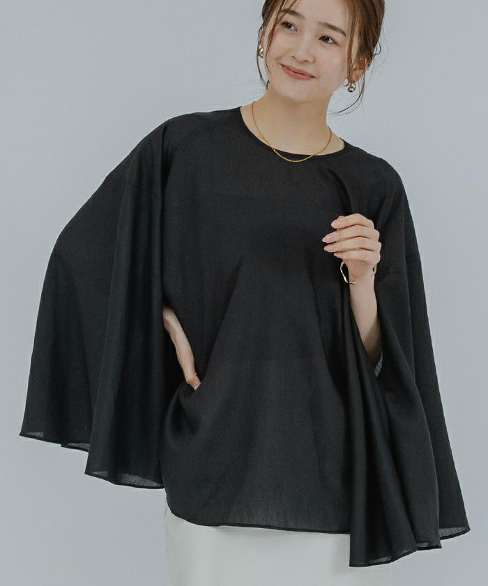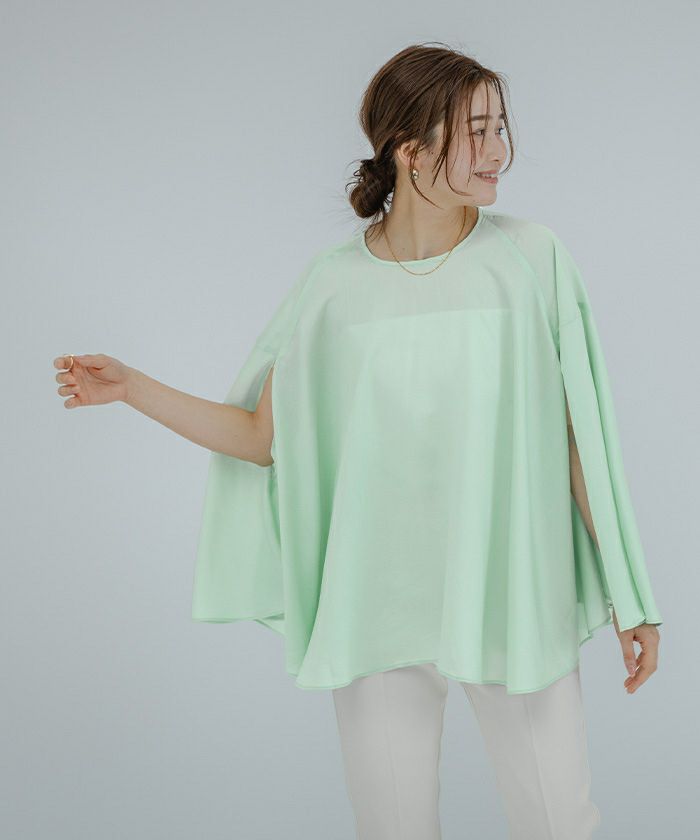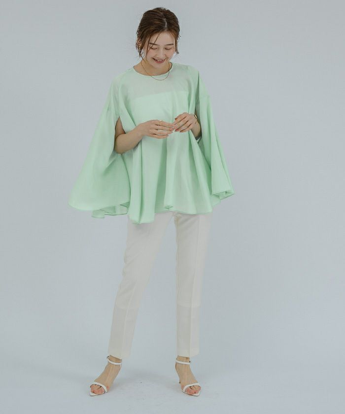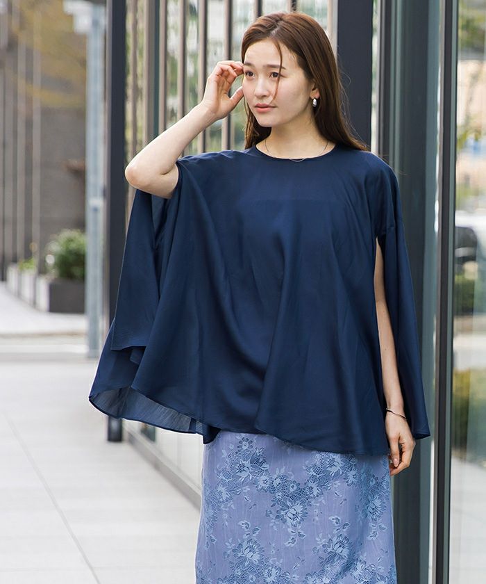 女性らしい上品さを演出してくれるケープブラウス。