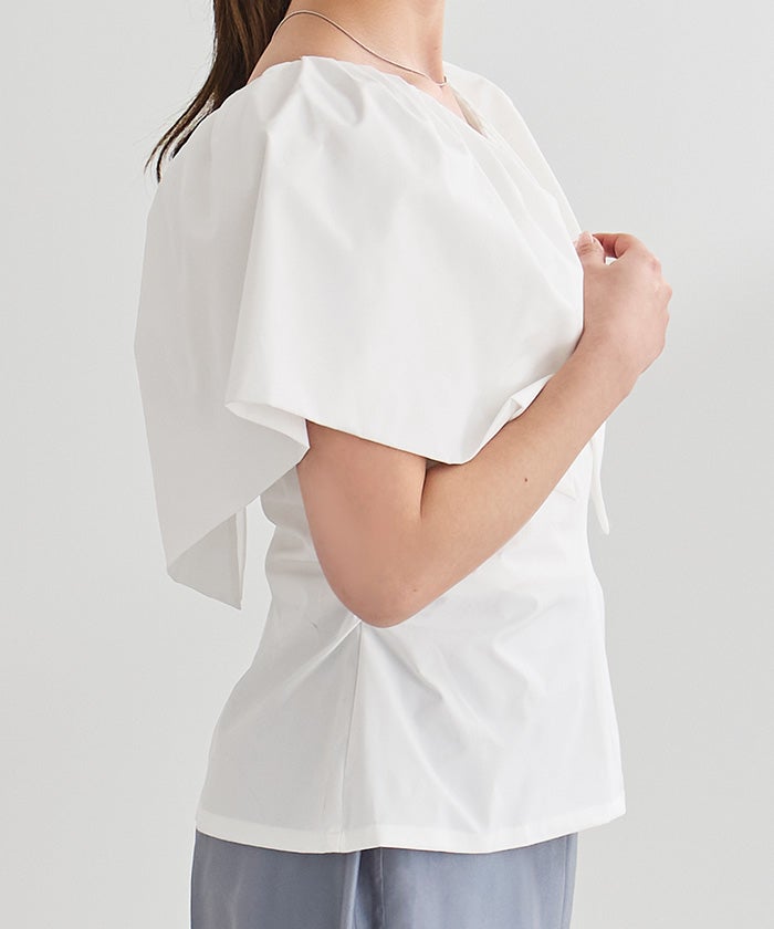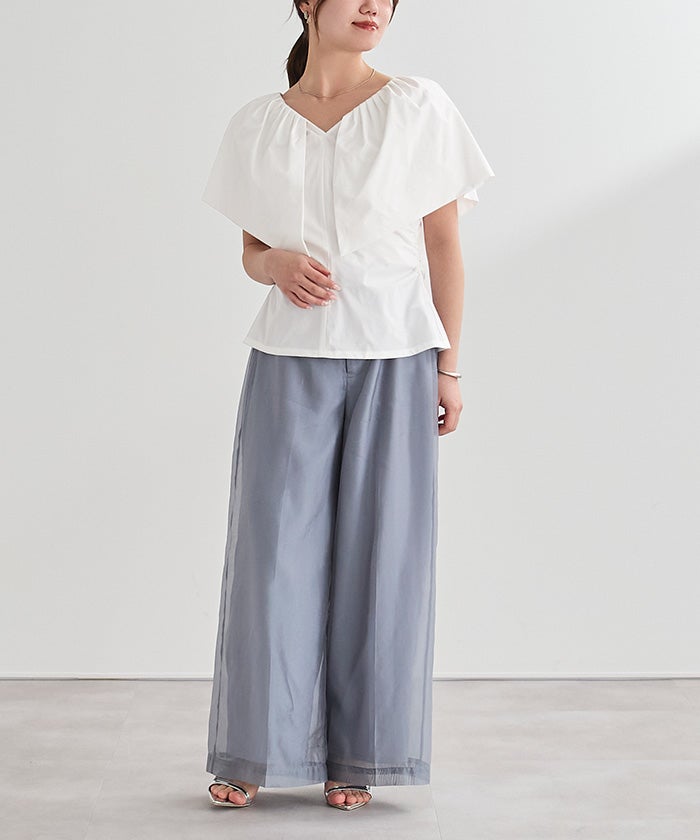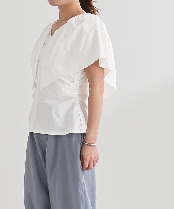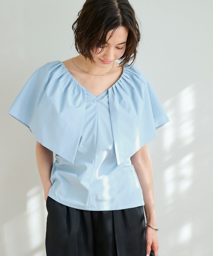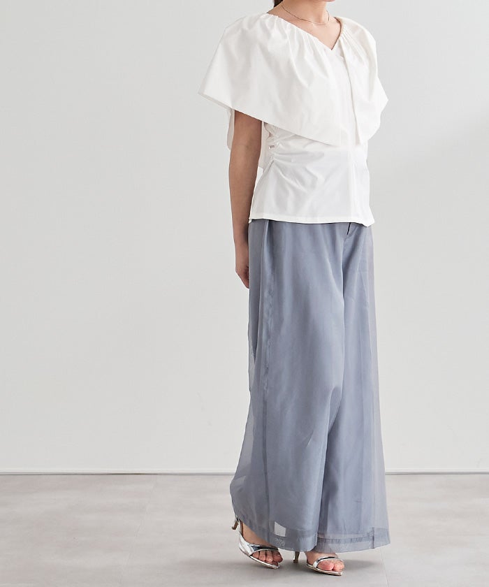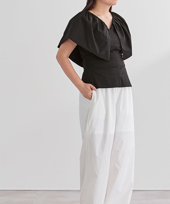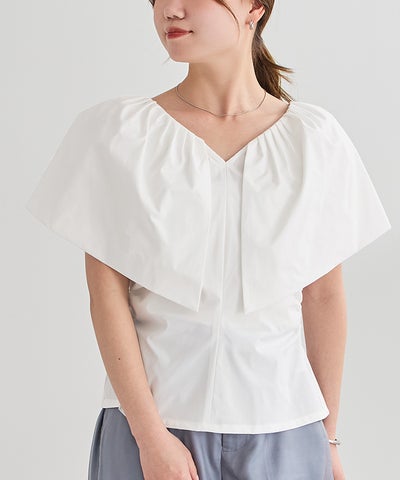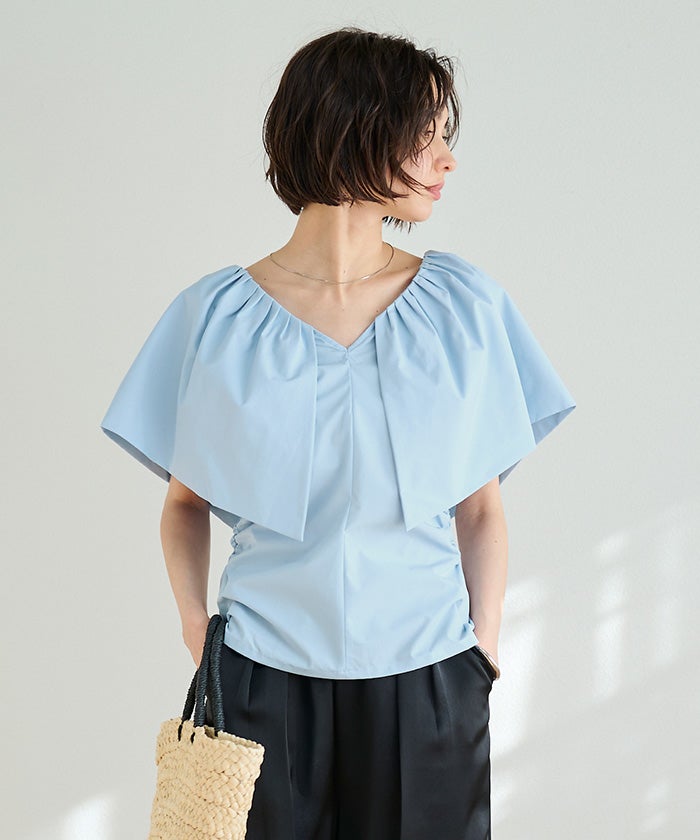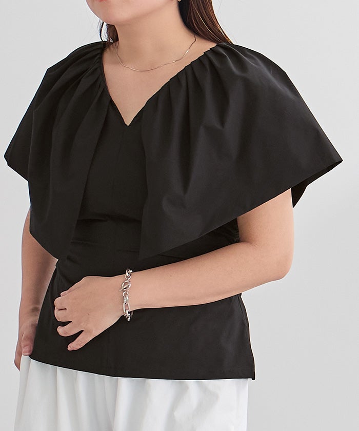 タックの入ったケープのデザインで、1枚で華やかになります。