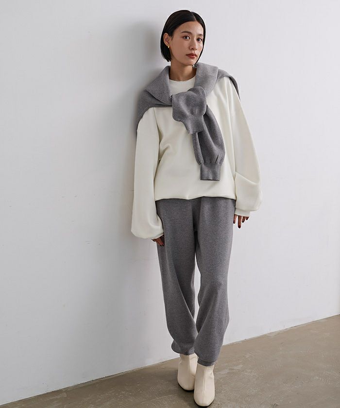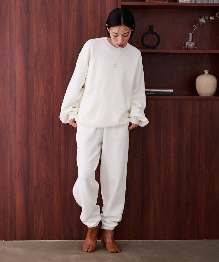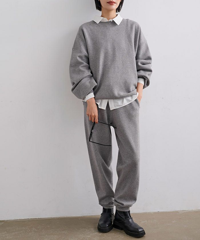 同素材シリーズのスウェットライクニットジョガーパンツとセットアップでもこなれ感ある印象できて頂けます。