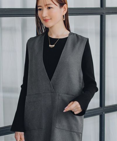 ソフトツイルポケットデザインディープVネックワンピース