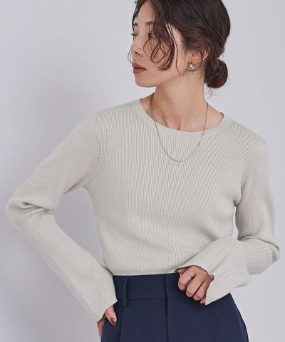 シンプルながらも女性らしさが際立つリブニットトップス。