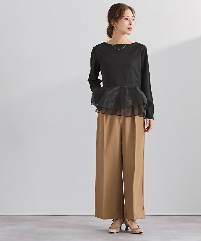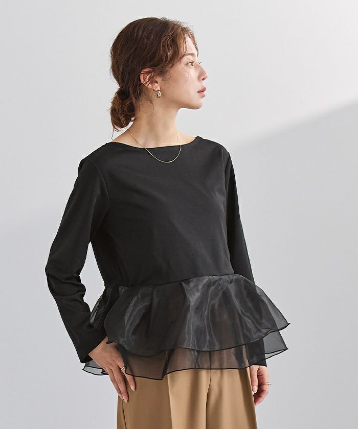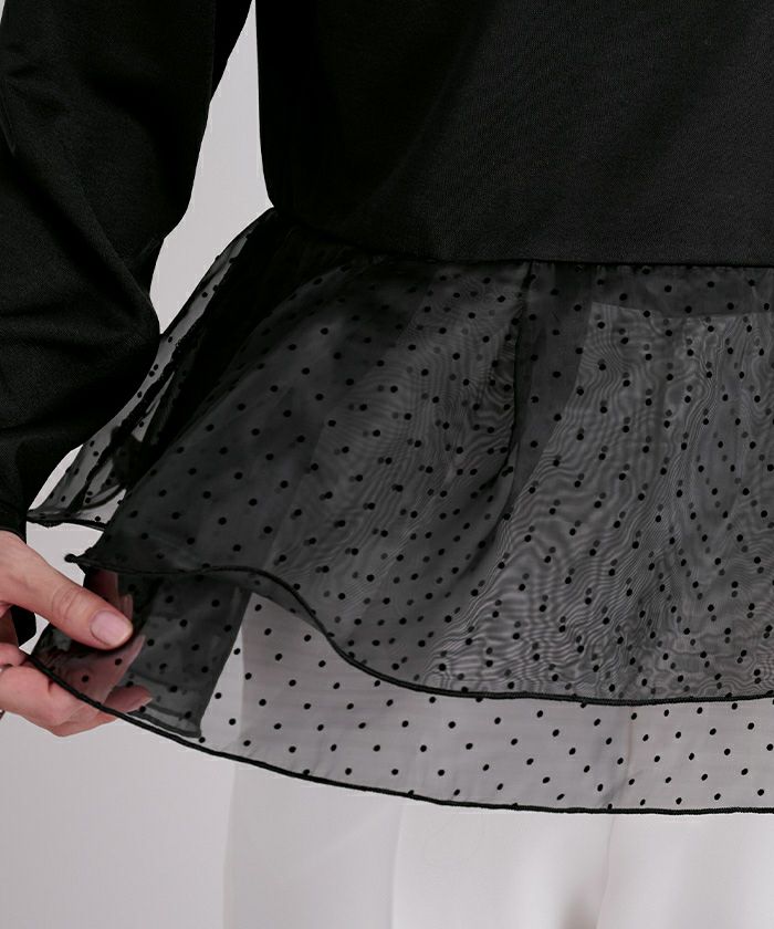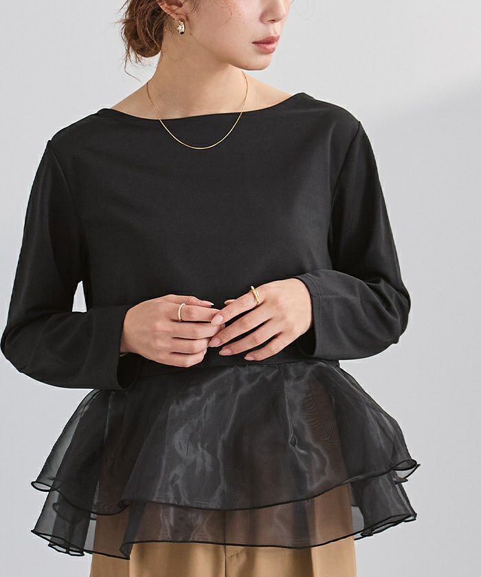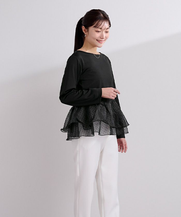 透け感のあるチュールを重ねたペプラムデザインのプルオーバー。