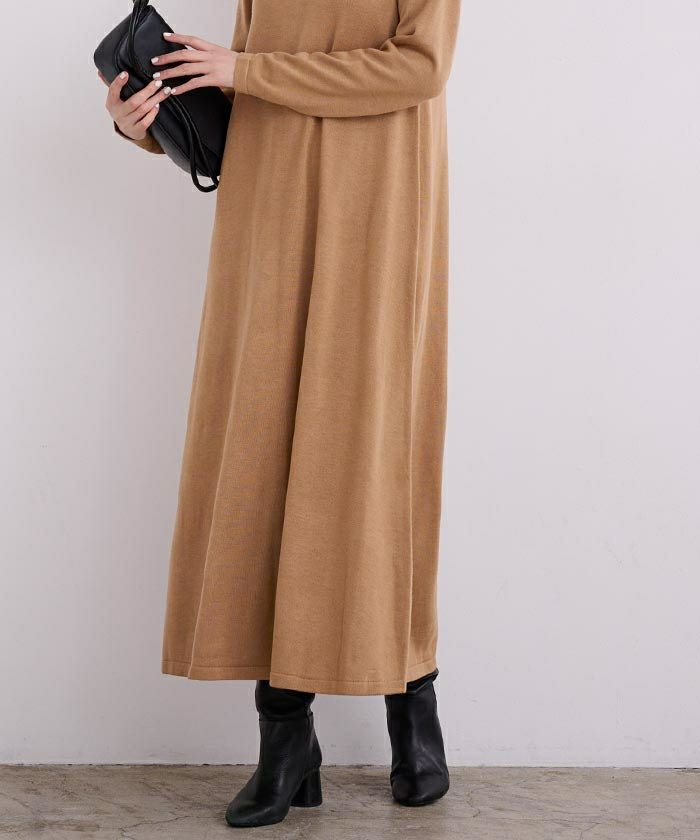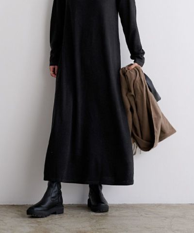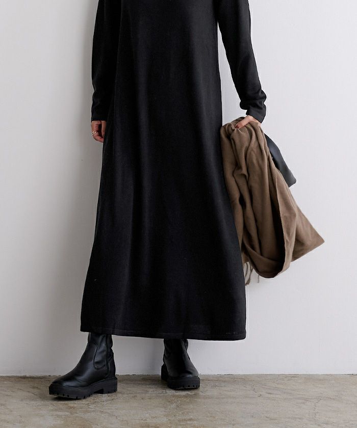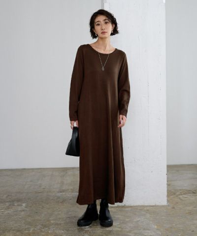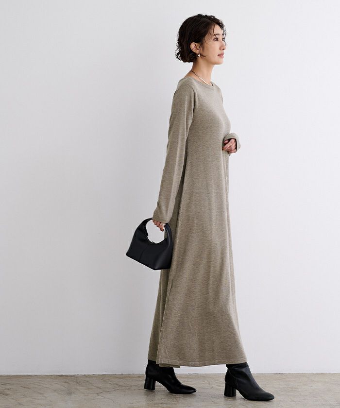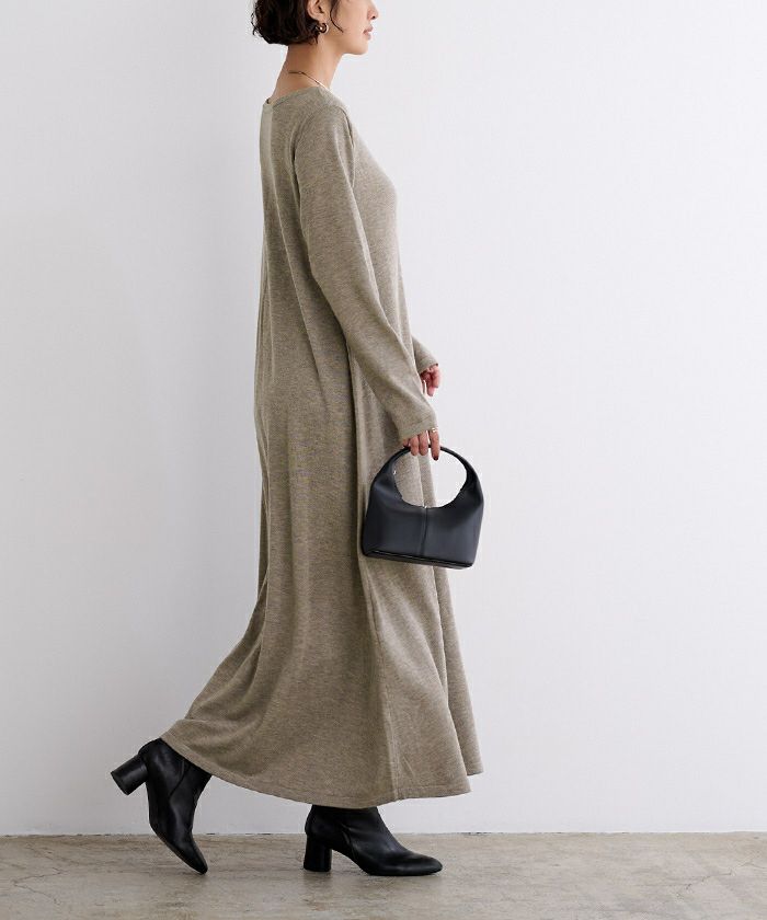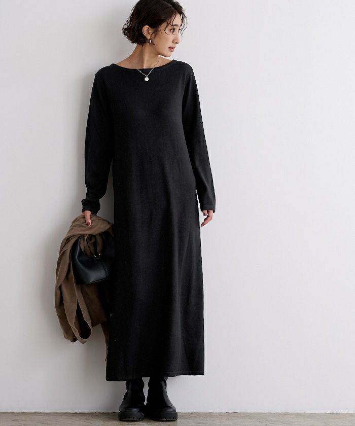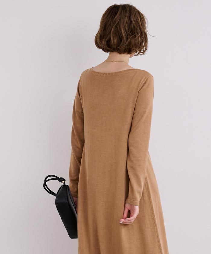 綺麗なAラインのシルエットが魅力のボートネックロングニットワンピース。
