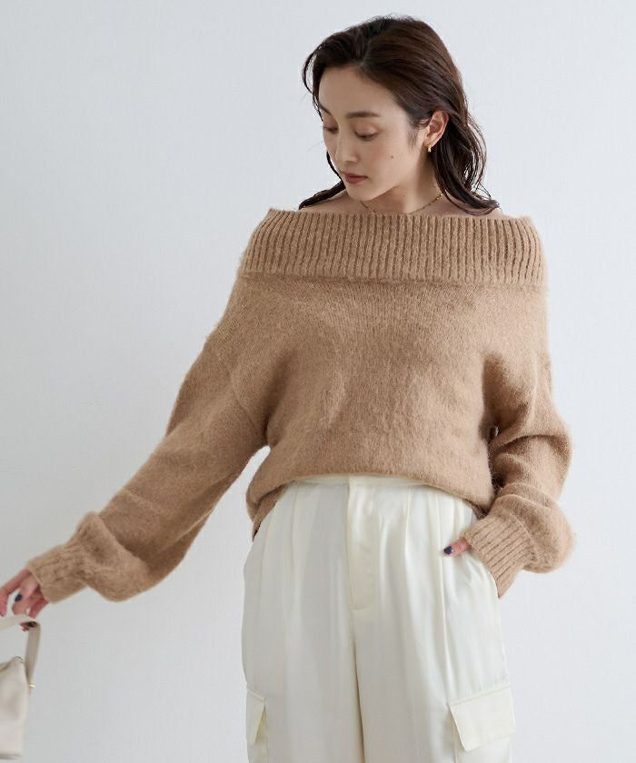 トレンドライクのオフショルダーニット。