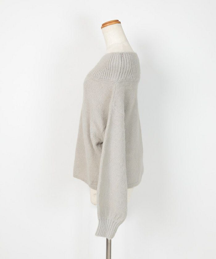 クルーネックパフスリーブニット