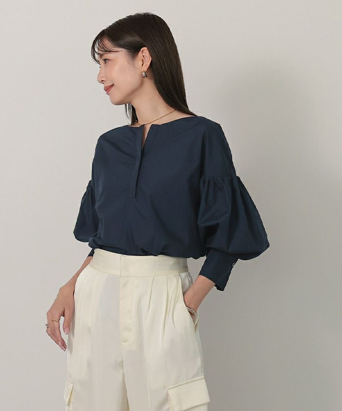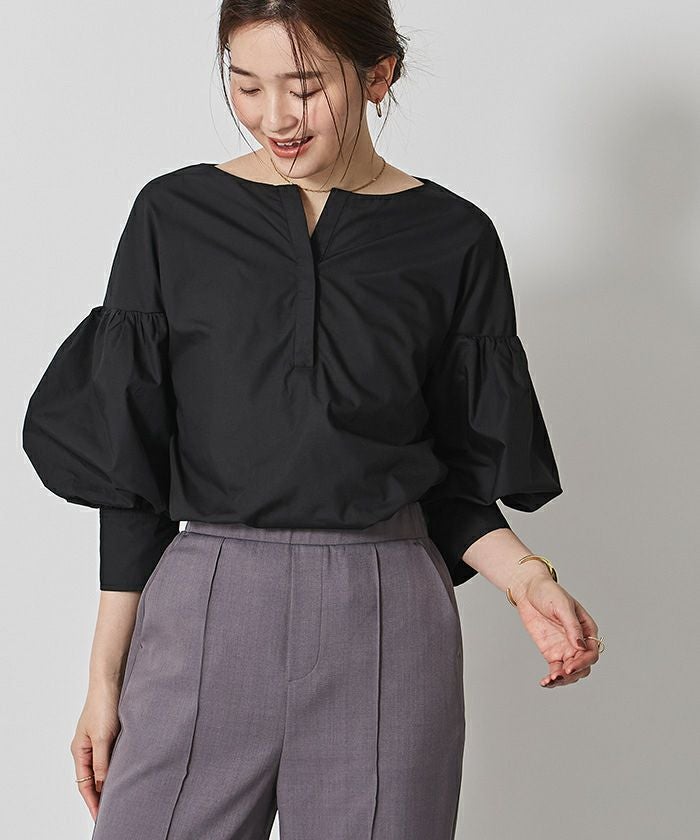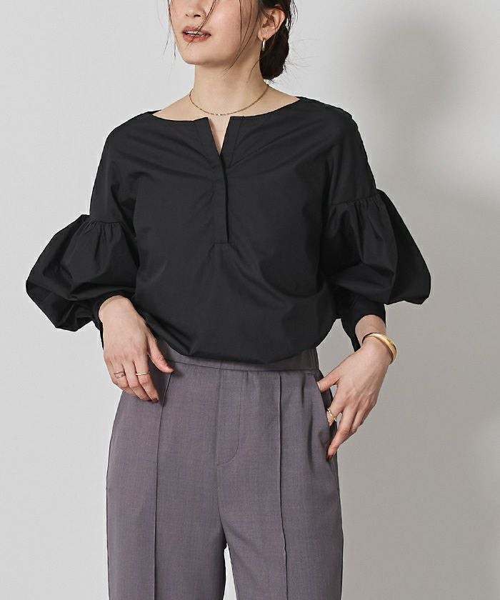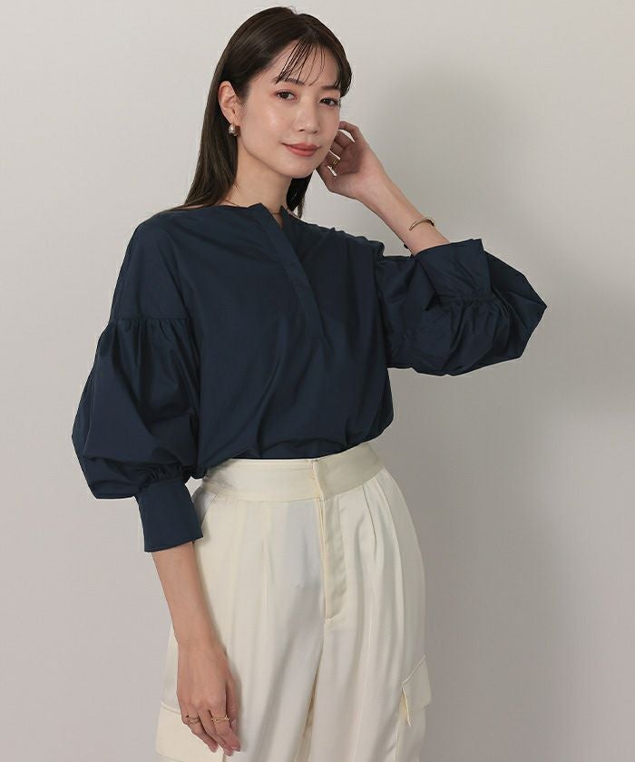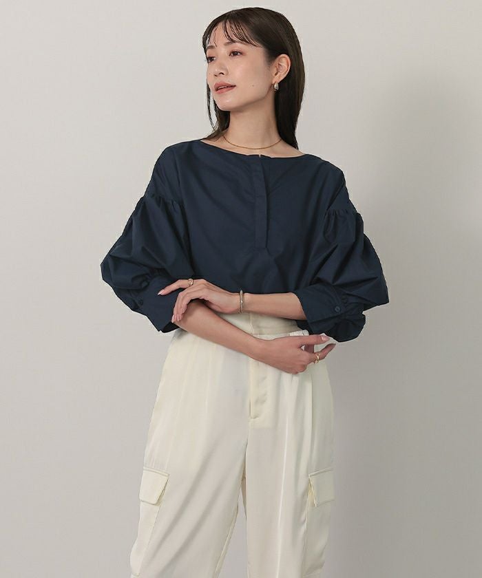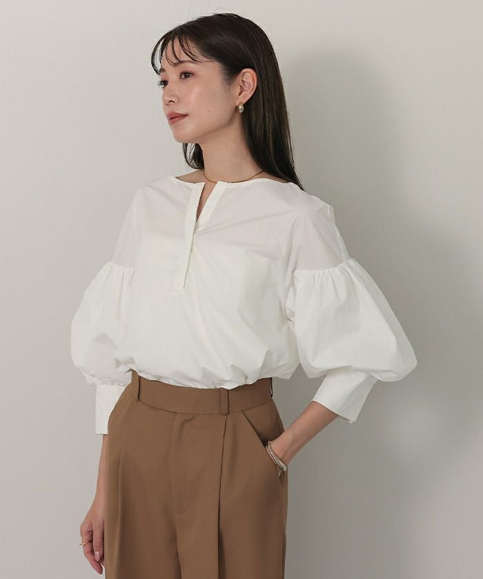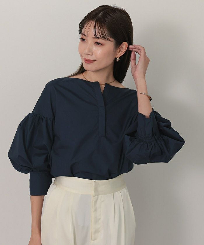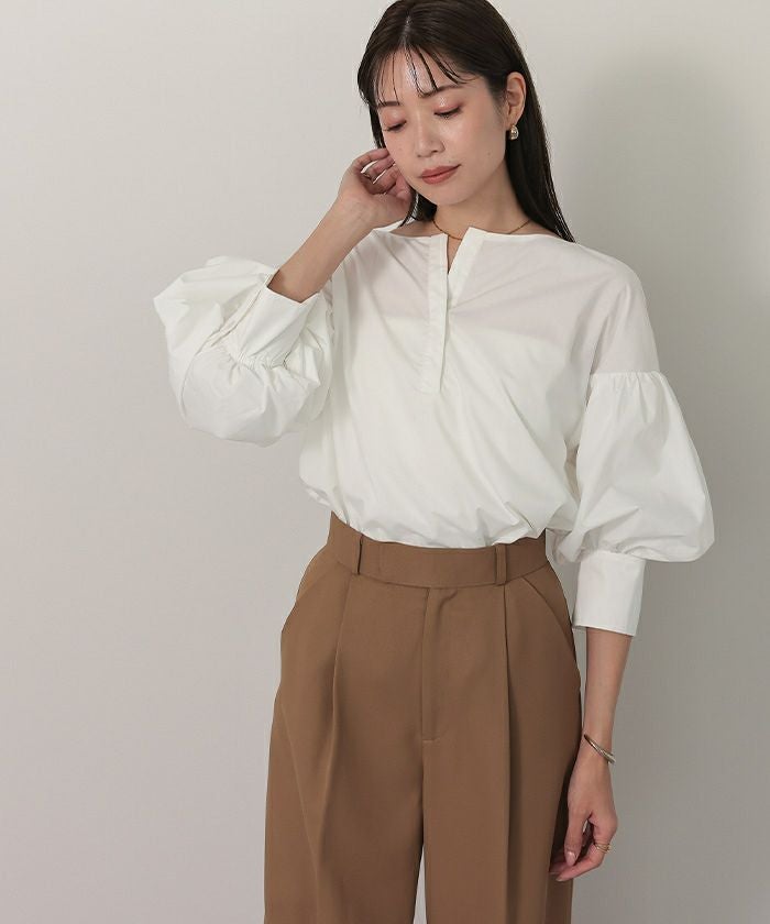 袖の膨らみが構築的なシャツブラウス