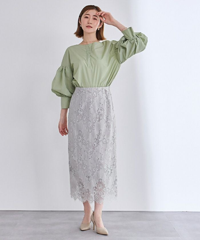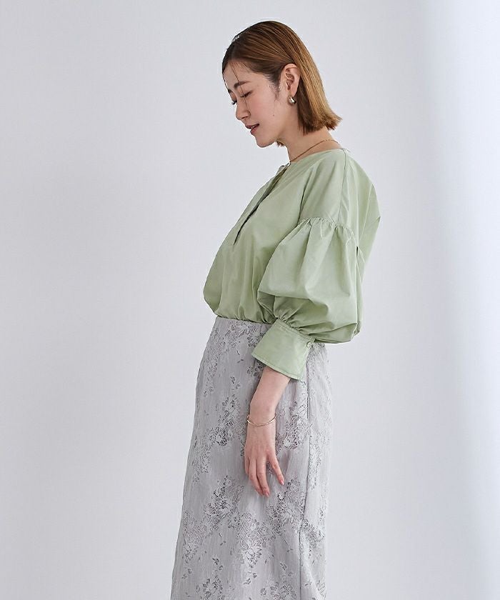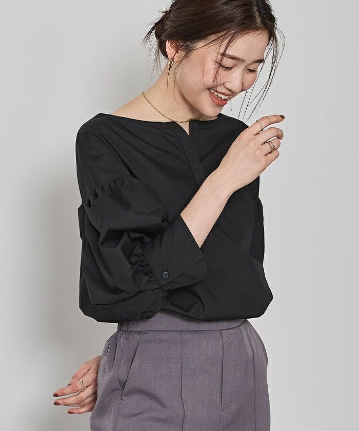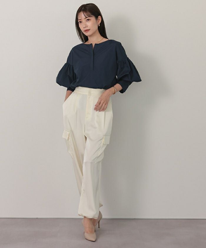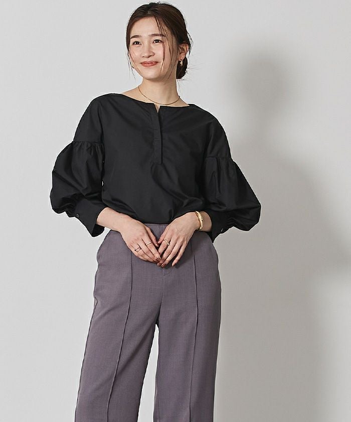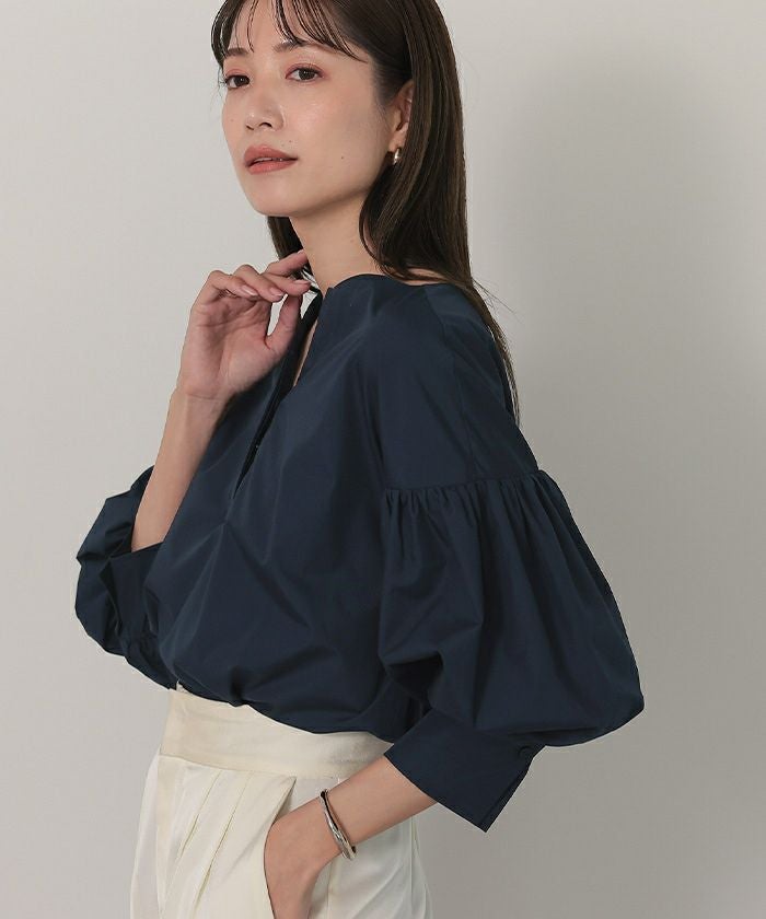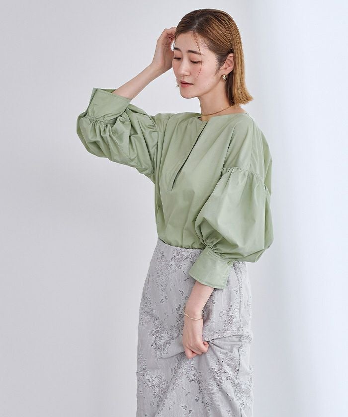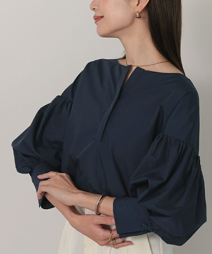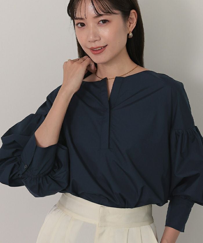 袖の膨らみが構築的なシャツブラウス