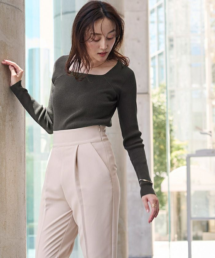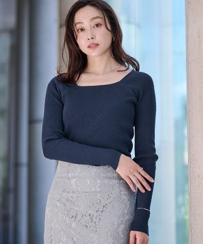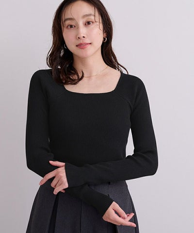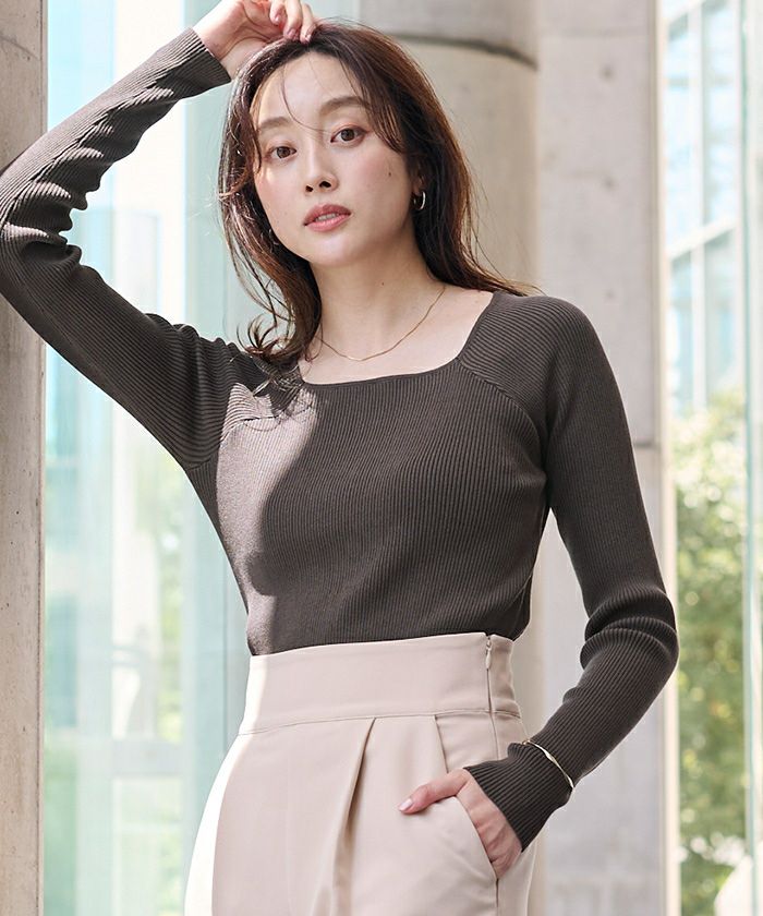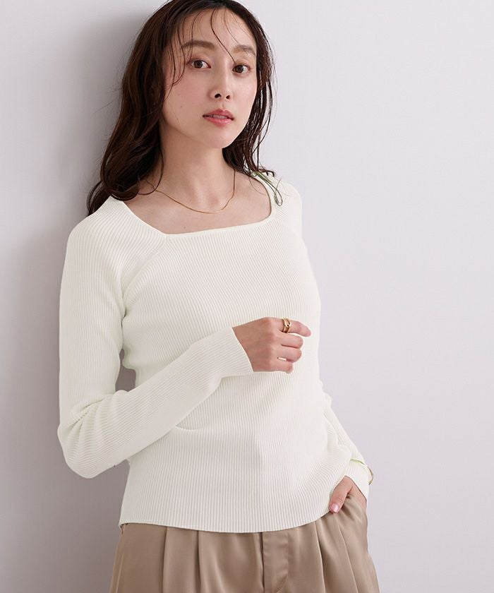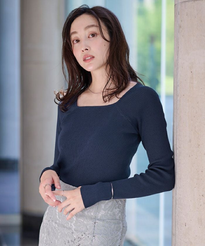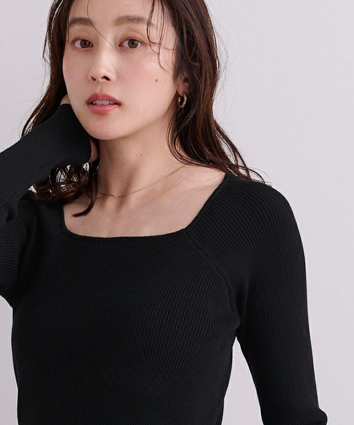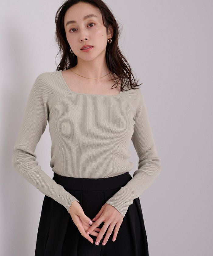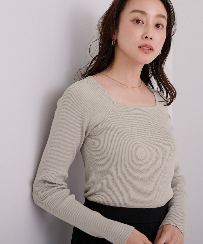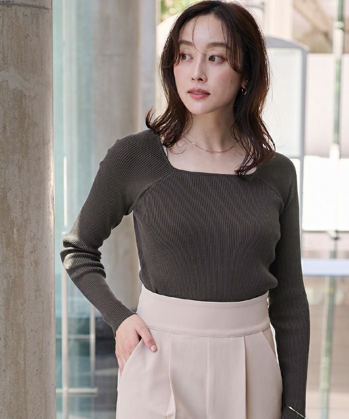 スクエアネックがデコルテを綺麗に見せてくれる女性らしいリブニット。