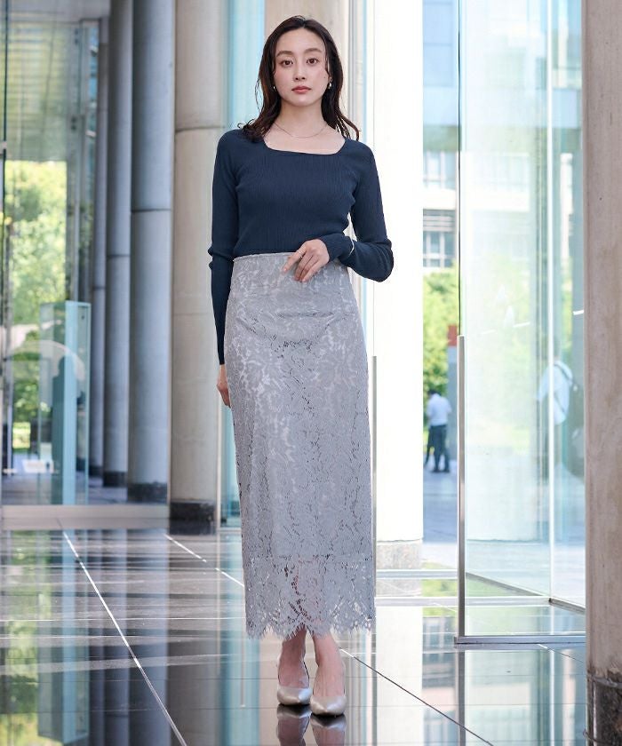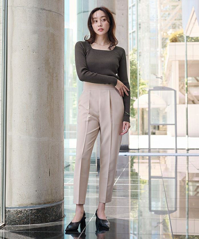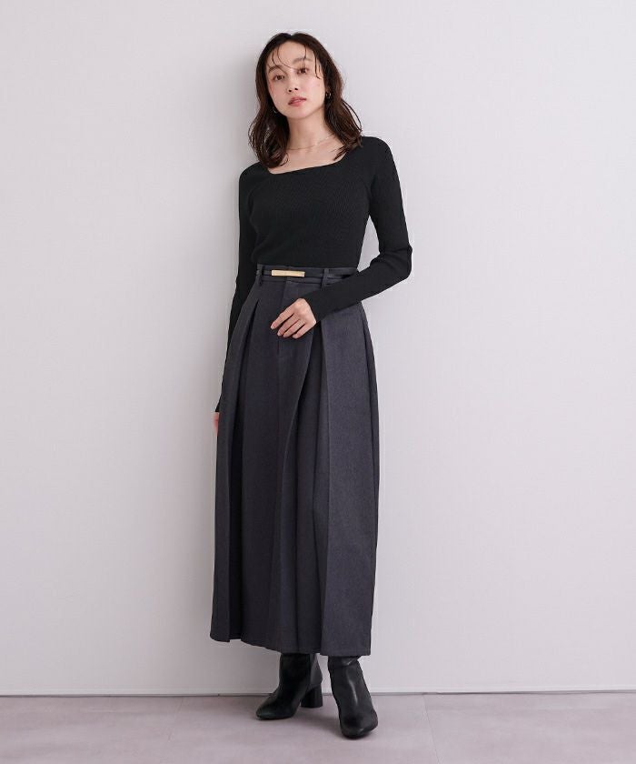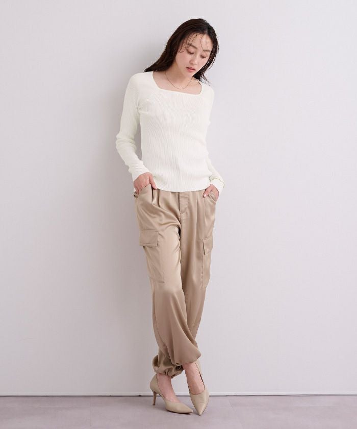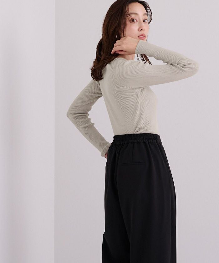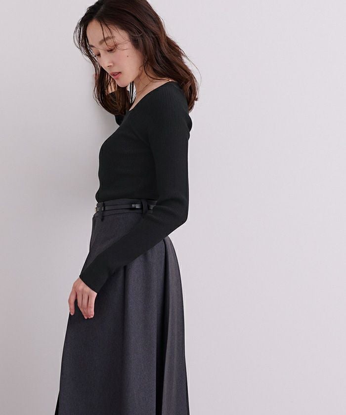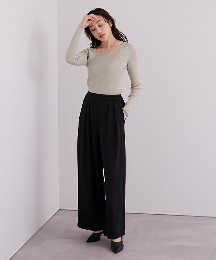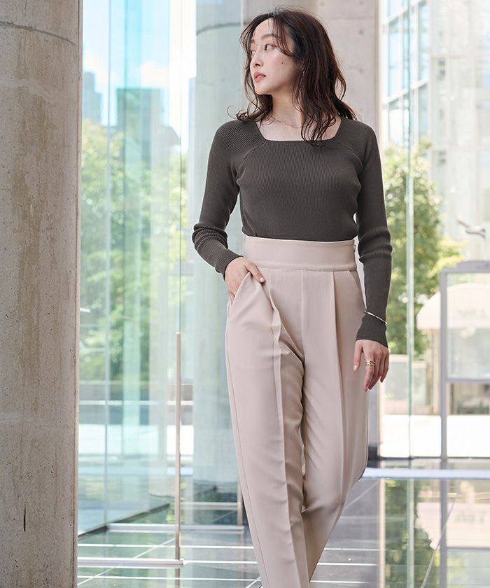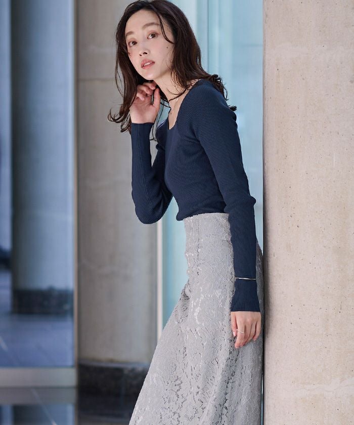 スクエアネックがデコルテを綺麗に見せてくれる女性らしいリブニット。