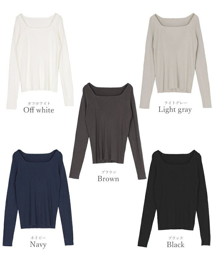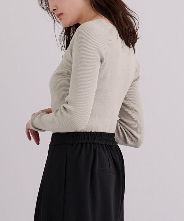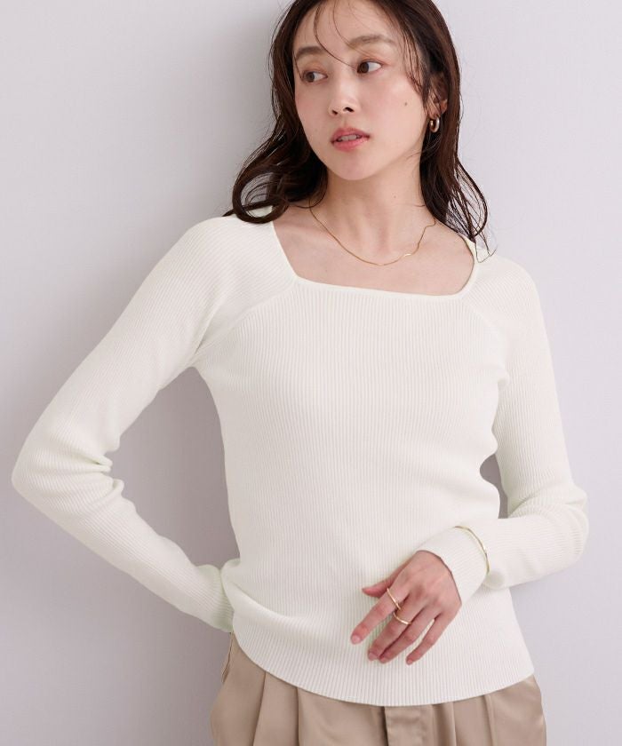 スクエアネックラグランスリーブリブニット