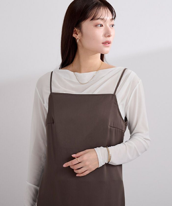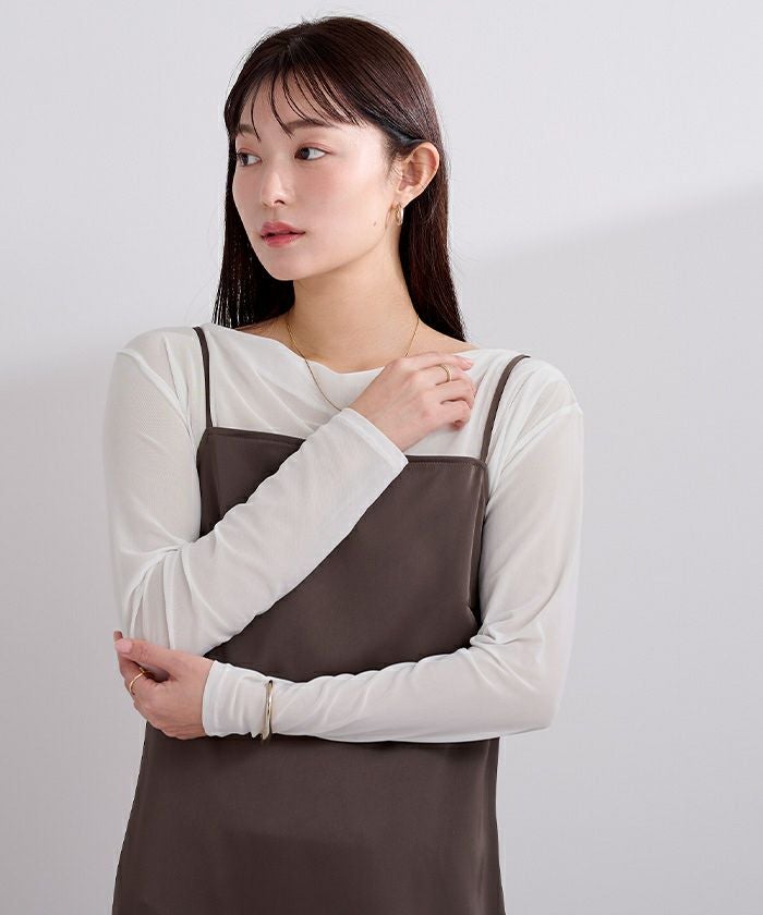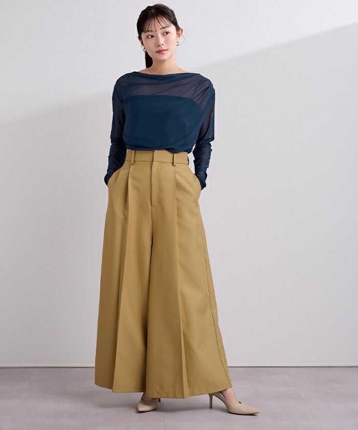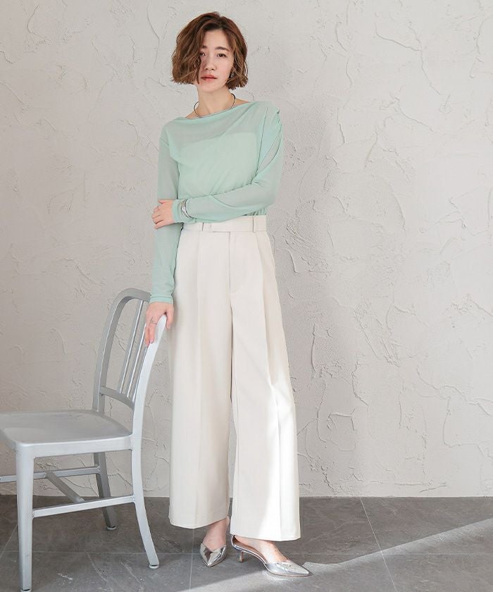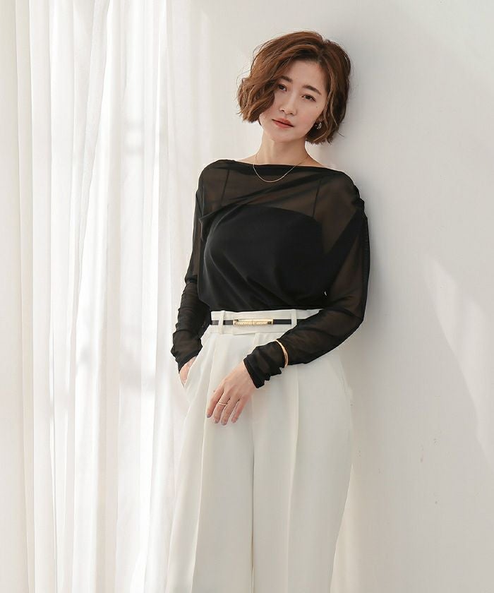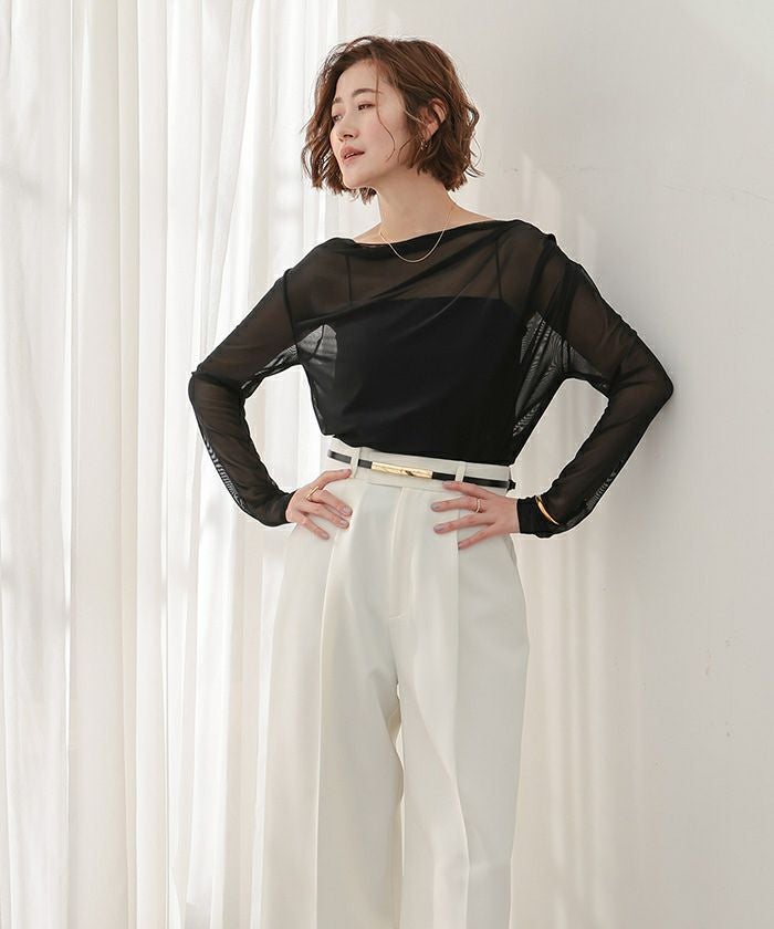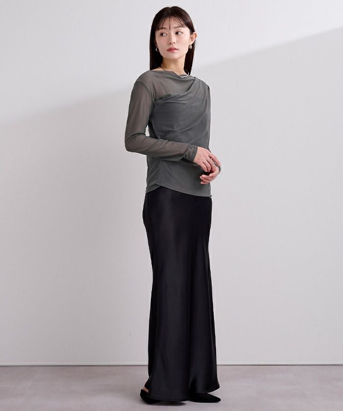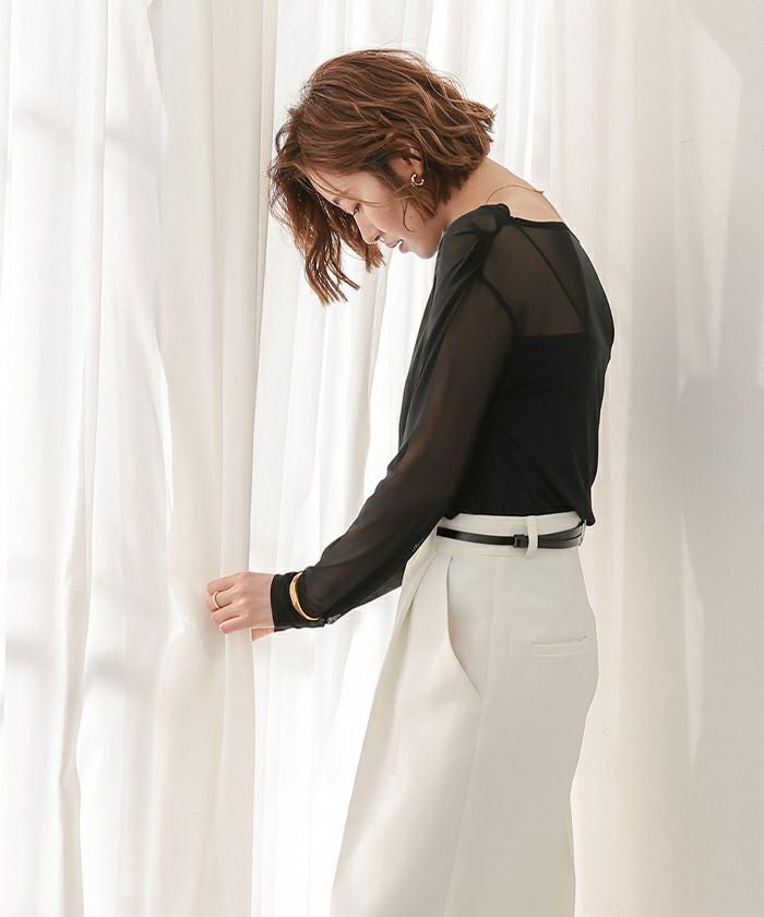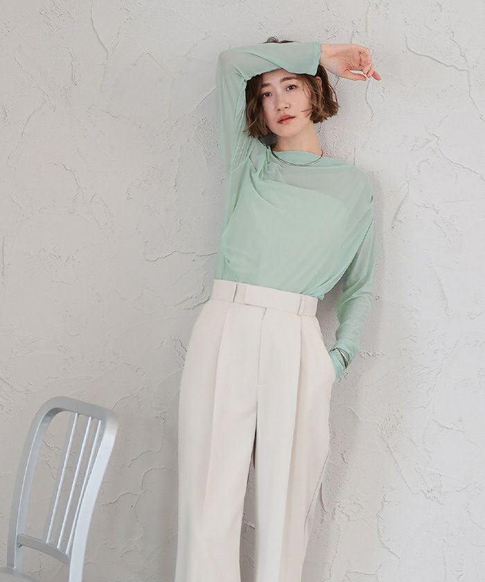 シアー素材を使用した抜け感のあるドレープカットソー。