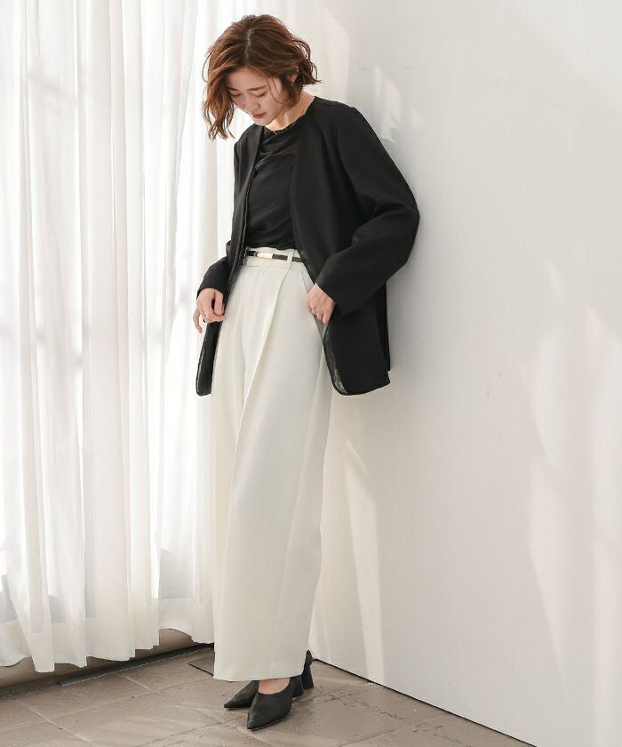 ドレープが上品さを引き立て、女性らしい印象をプラスします。