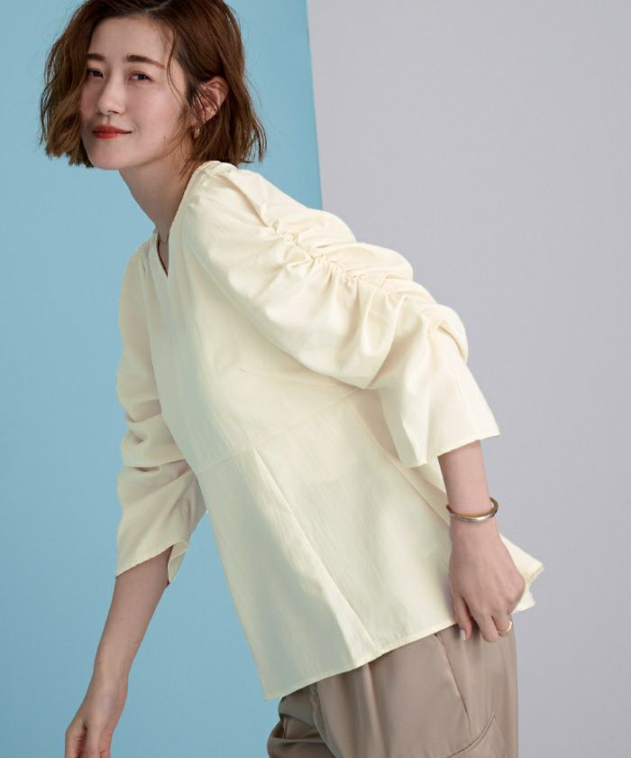他の画像を見る 【洗える】【期間限定★2500均一】 シャーリングデザインスリーブVネックブラウス【メール便可/100】 定価 ¥ 5,489 のところ 価格 ¥ 2,500 税込 お気に入りに登録する