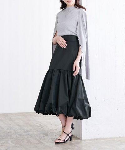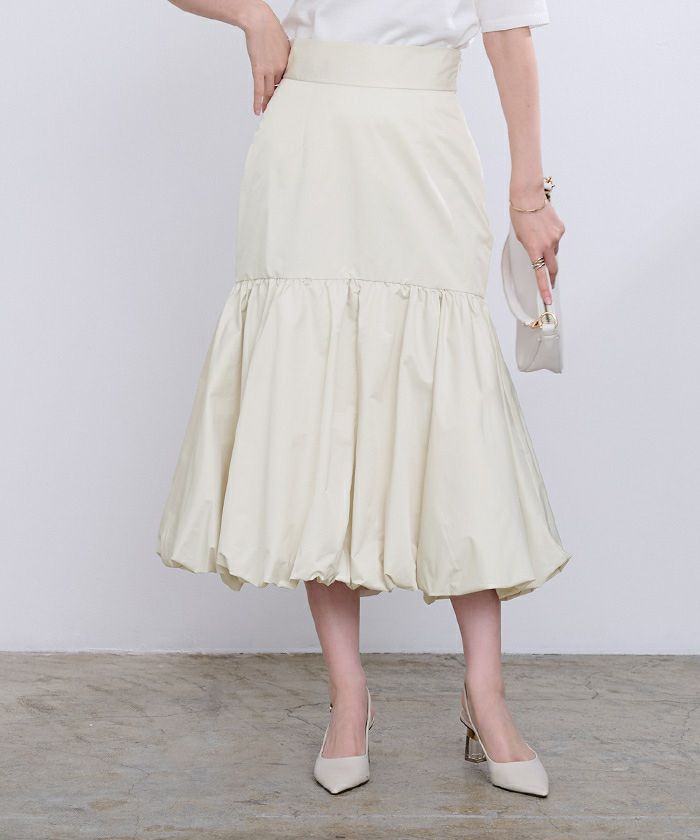 腰回りをすっきりとさせたティアードスカートで裾はバルーンデザインにして今年らしく。