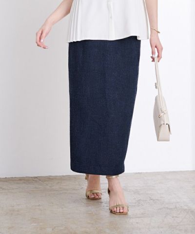 タイトめなシルエットですがウエスト部分にタックをいれているので気になるウエスト周りがカバーできる。
