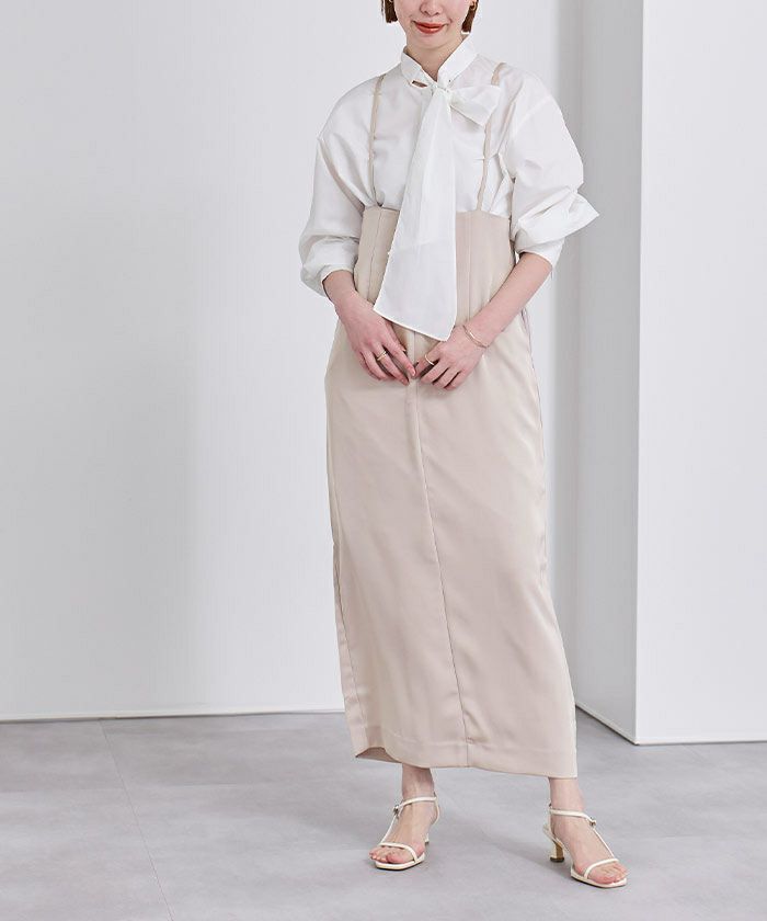 程良くタイトなラインとサテン素材でレディな雰囲気に仕上げました。