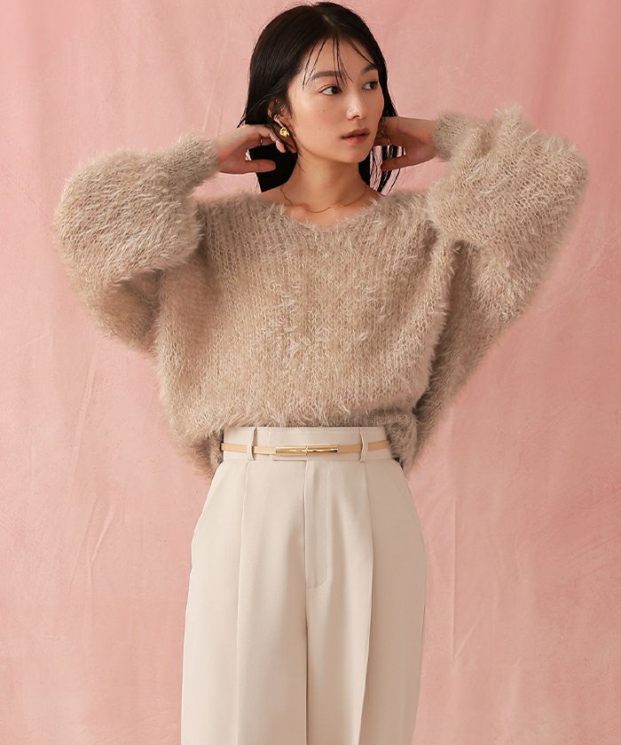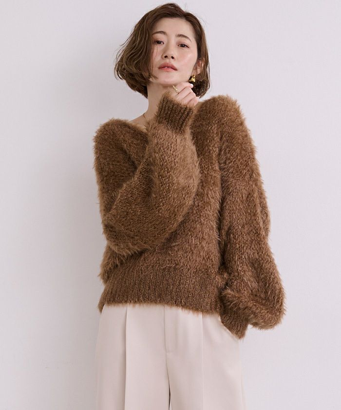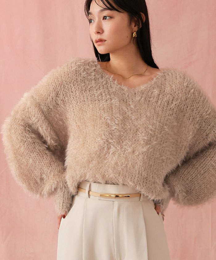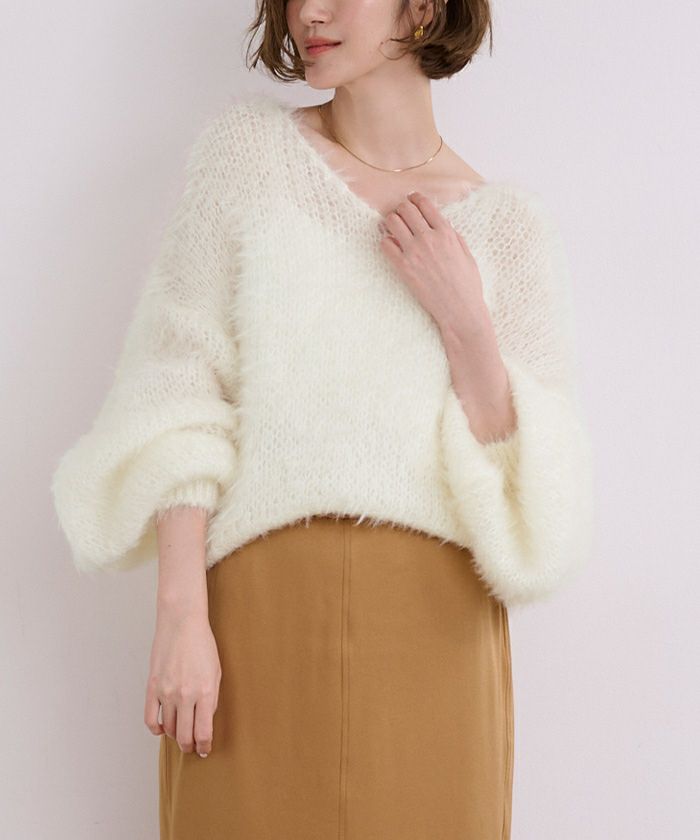 Vネックオーバーサイズシアーローゲージニット