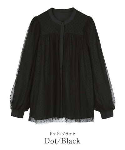 チュール素材の透け感がトレンドムード漂うブラウス。