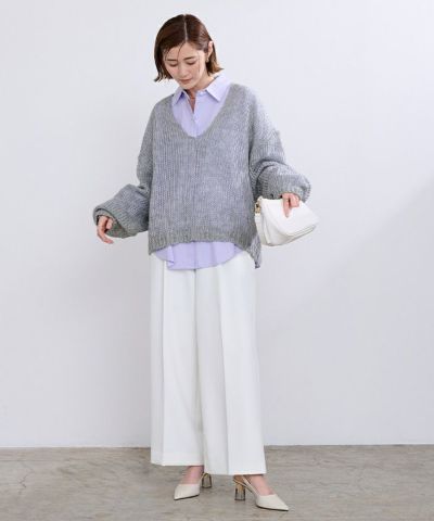 ・広めのVネックがデコルテラインを綺麗に見せてくれます。