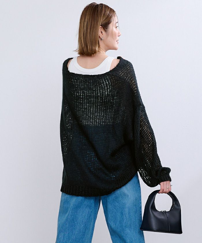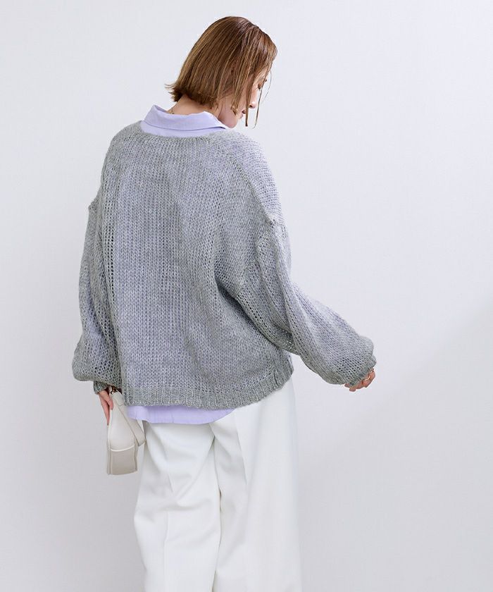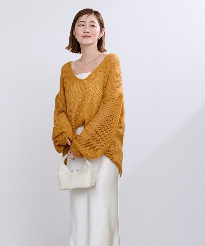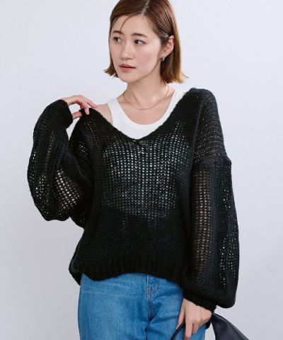 透かし編みVネックプルオーバー