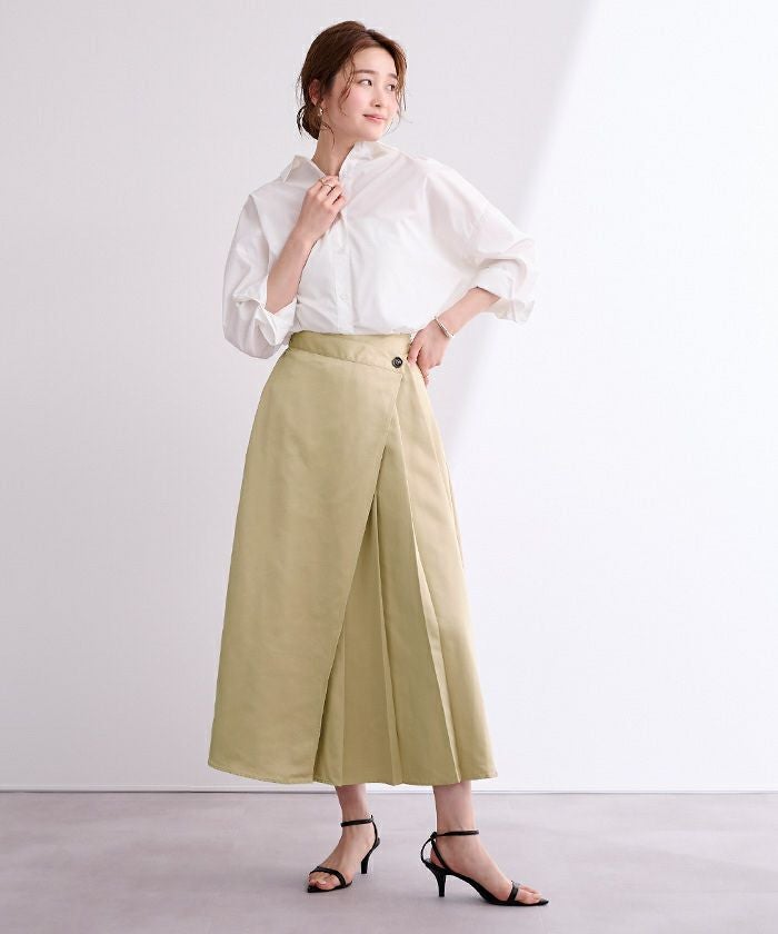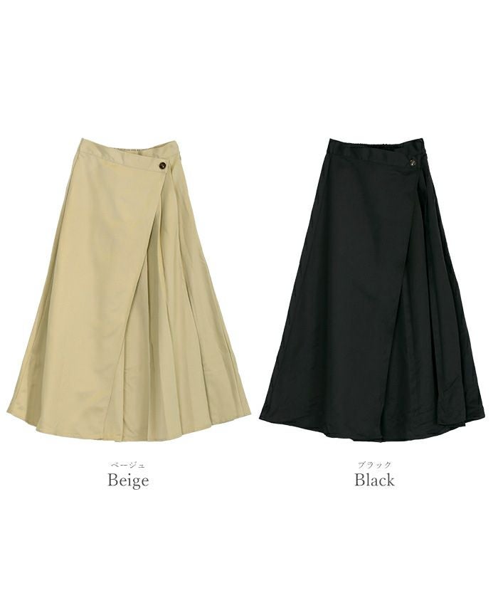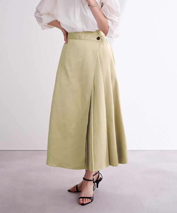 サイドから後ろにかけてプリーツが入ったラップ風のスカート。
