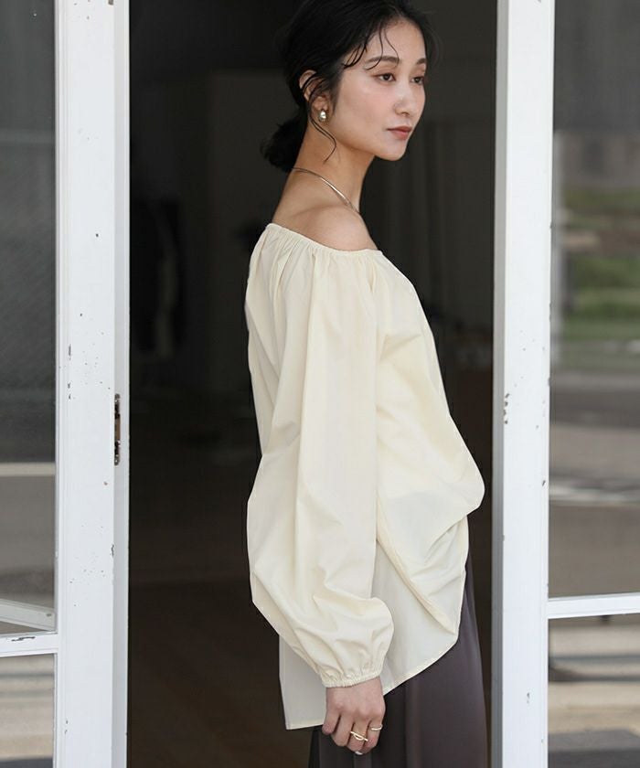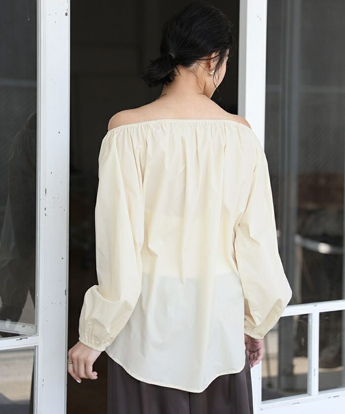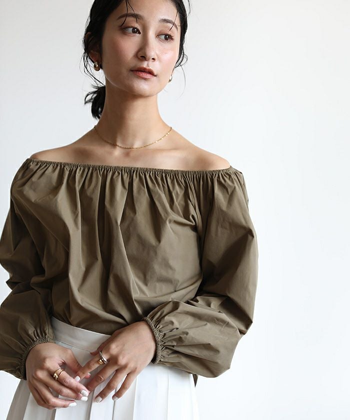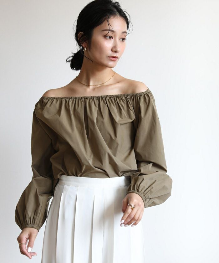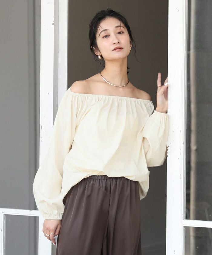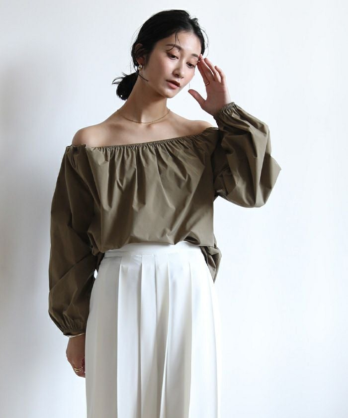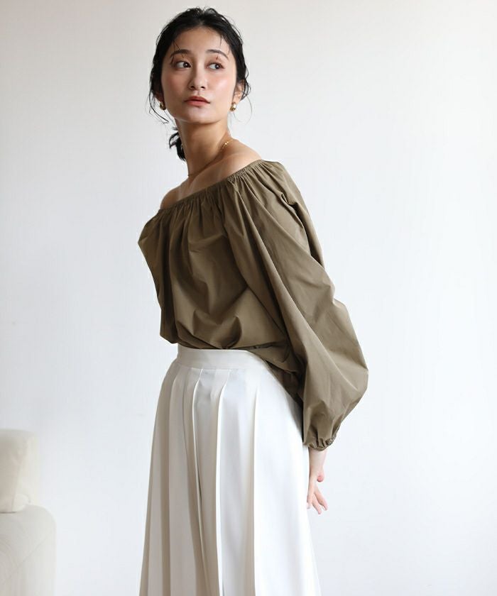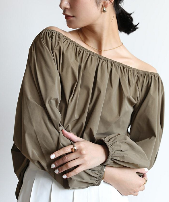 オフショルダーボリュームスリーブトップス/ラッシュガード