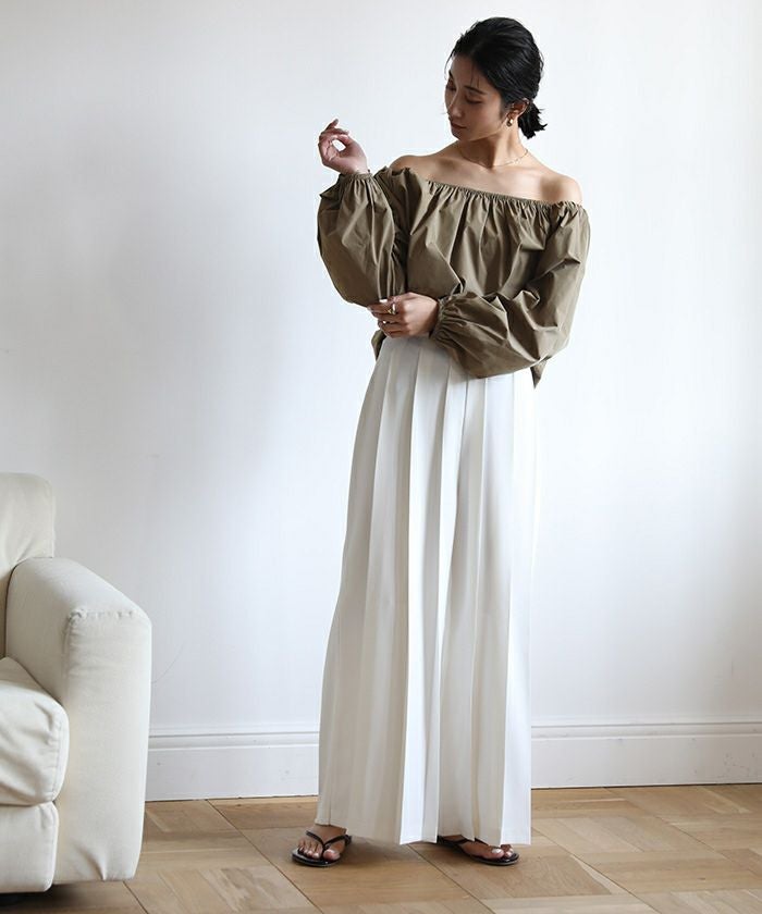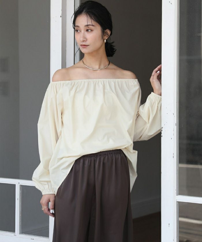 ・リゾート風にデコルテをきれいに見せるオフショルダーやワンショルダースタイルの着こなしや、きれいめにボートネックでのスタイリングも可能なマルチway仕様。