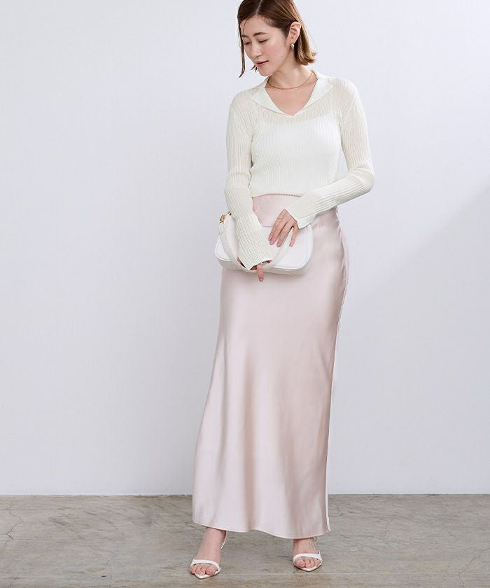 ・シアーニットでシンプルなボトムと合わせてもこなれ感ある印象に。