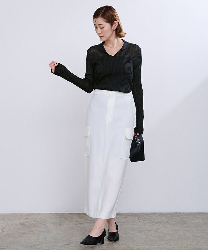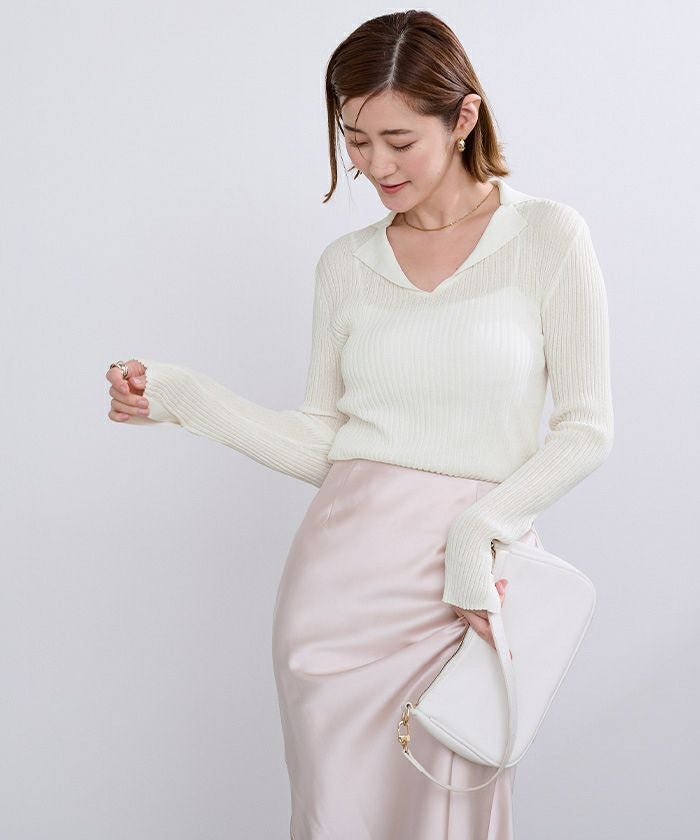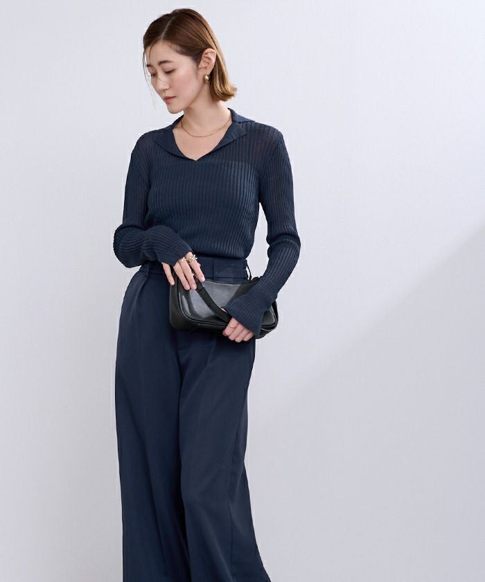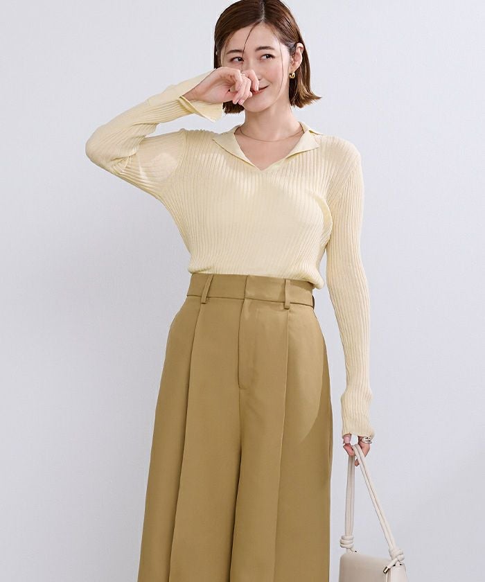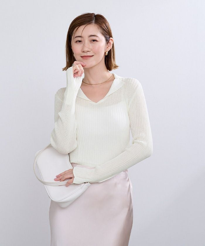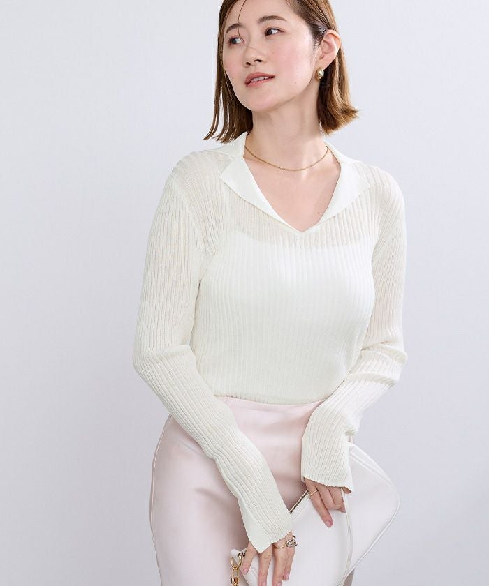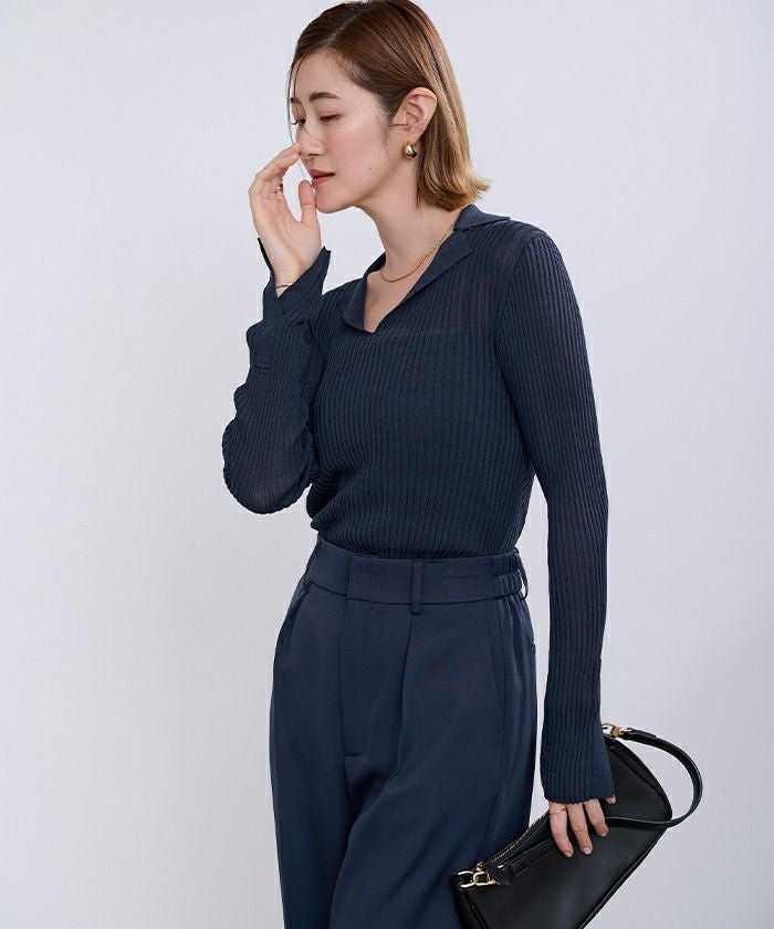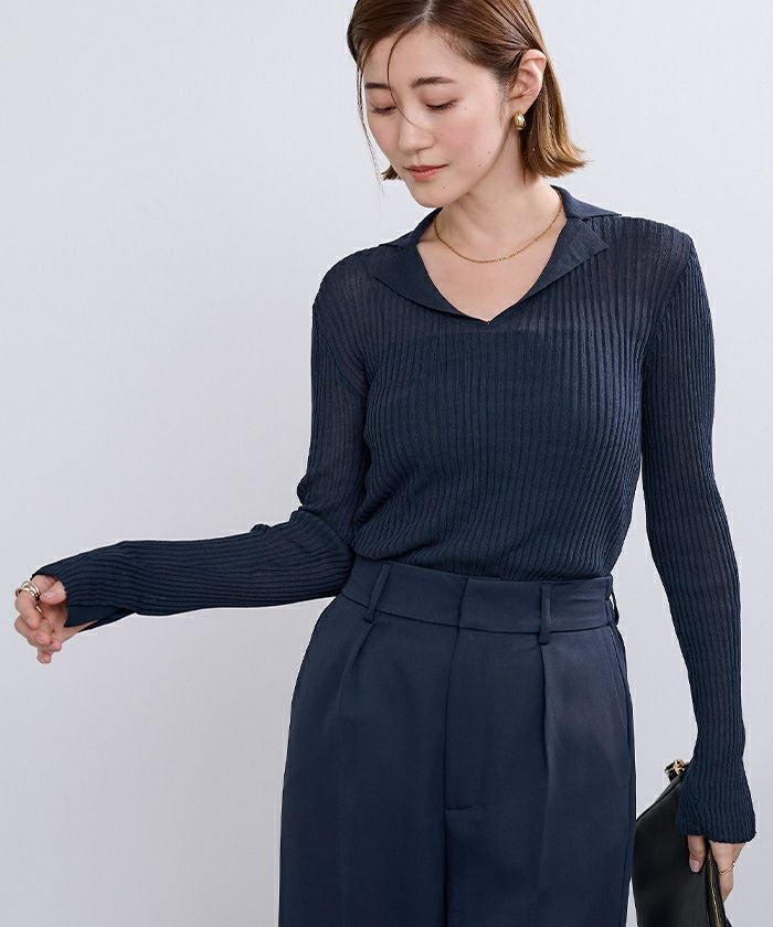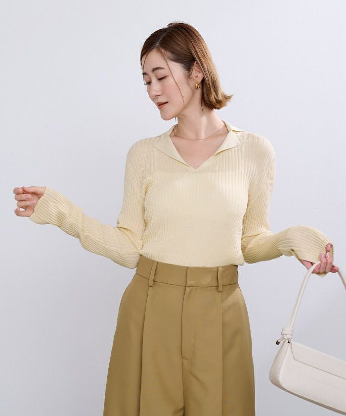 オープンカラーシアーリブニット【メール便可/100】
