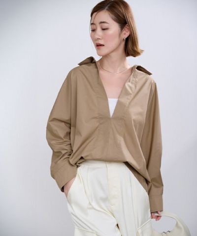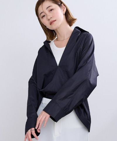 スキッパーネックドルマンスリーブオーバーサイズシャツ